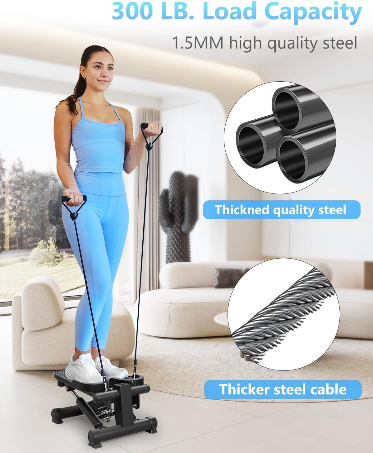 【300 lbs Load Capacity】Constructed with 1.5mm thick industrial-grade steel, our stepper machine guarantees robustness and longevity, supporting up to 300 lbs. Regardless of body type, you can exercise safely and securely, enjoying a durable workout experience.