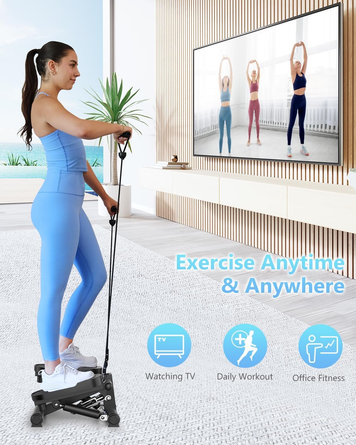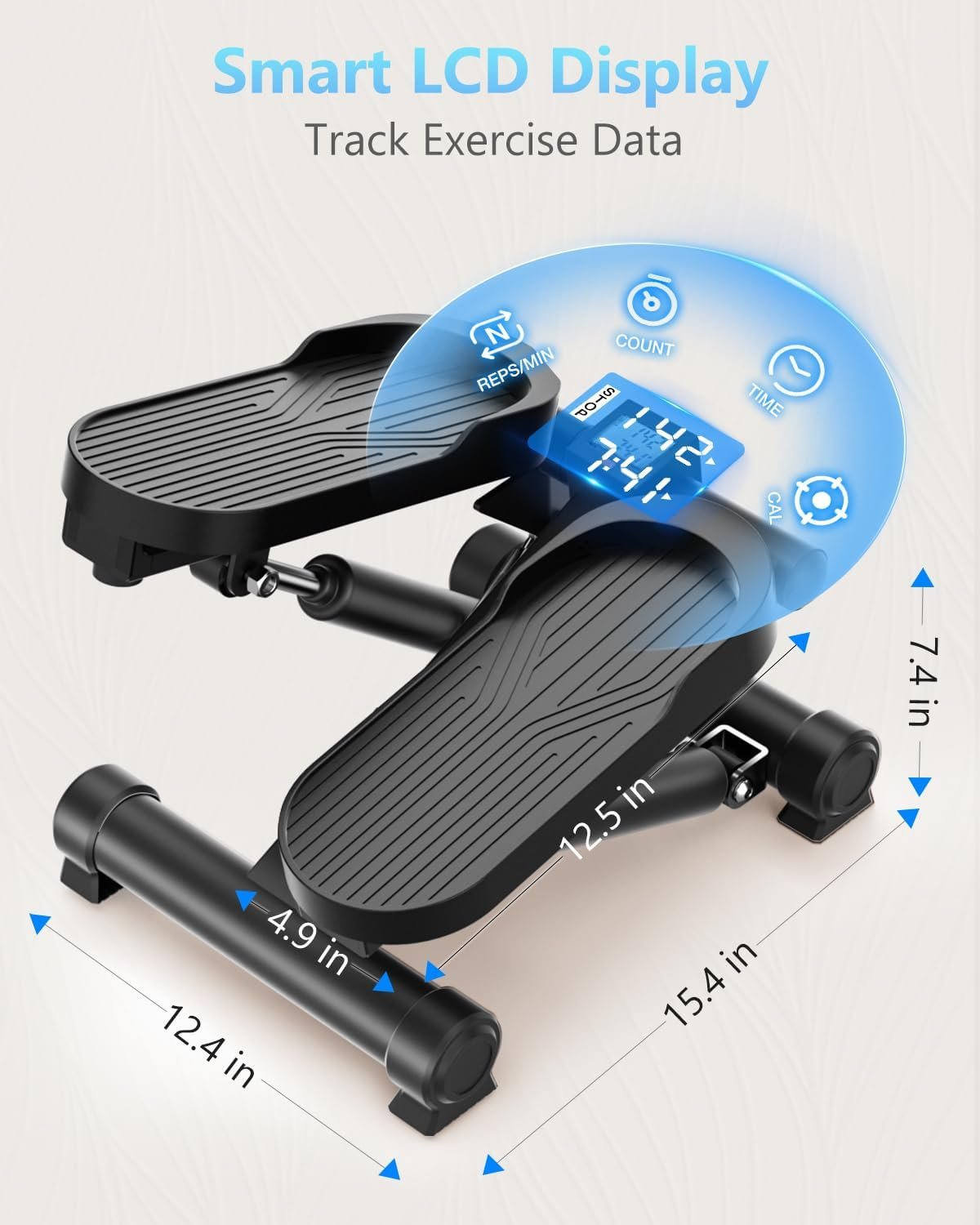 【Track Your Progress】The digital display on our mini stepper tracks your workout time, total calorie burn, and distance covered. This feature lets you easily monitor your exercise stats and scientifically plan your next workout.