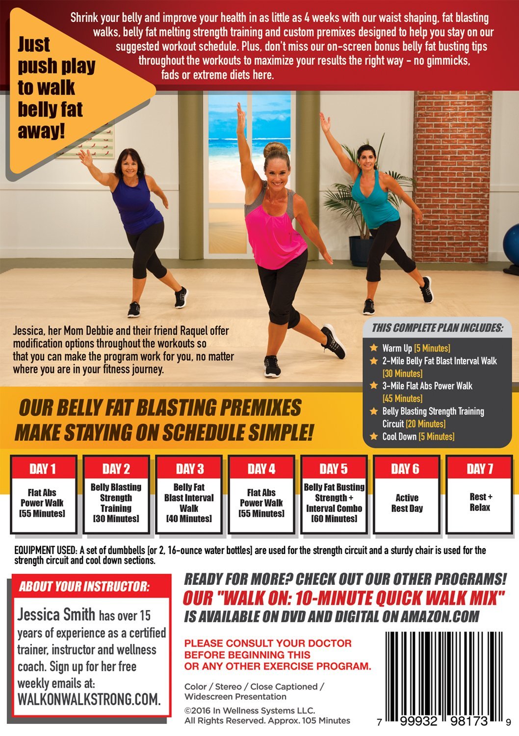 Shrink your belly and improve your health with our complete 2 and 3-Mile waist shaping, fat blasting walks, belly fat melting strength training and our custom premixes designed to help you stay on our suggested workout schedule. Plus, don’t miss our on-screen bonus belly fat busting tips throughout the workouts to help you maximize your results the right way – no gimmicks, fads or extreme diets here.