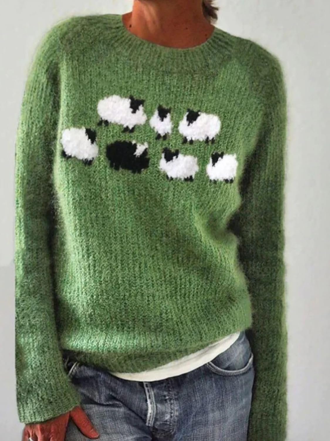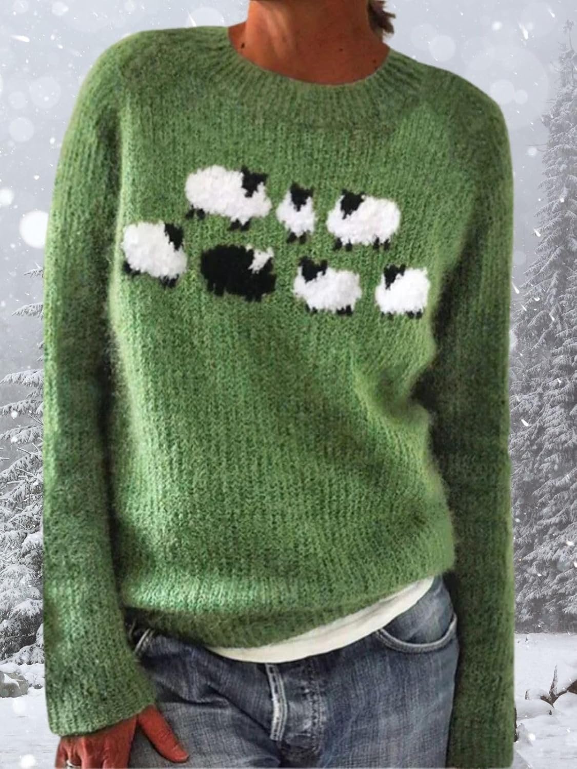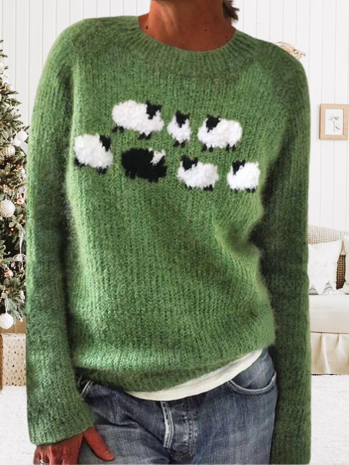Fall Winter Casual Oversized Argyle Crewneck Sweater