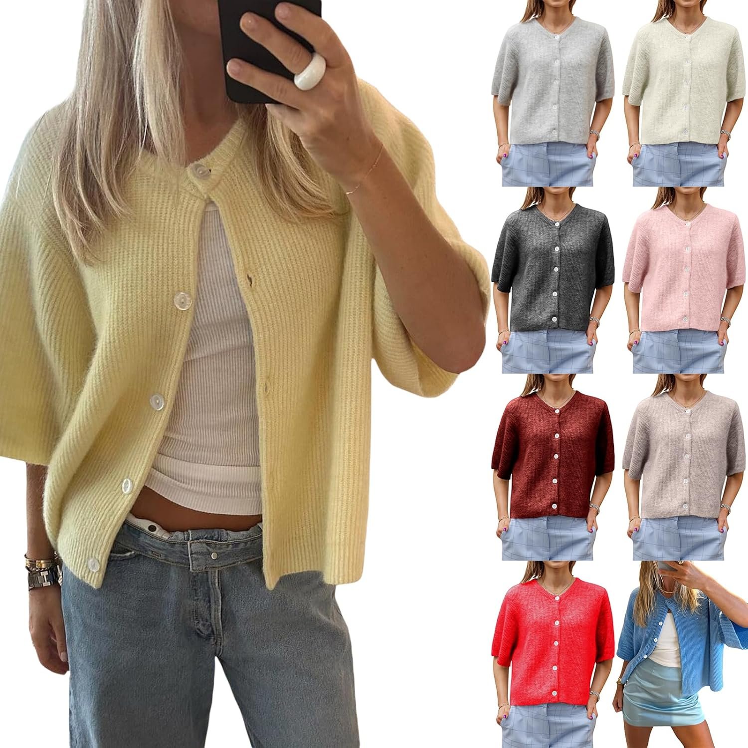 Y2k Women’s Light Weight Cardigan Short Sleeve Button up Sweater Knitted Crop Top Casual Solid Knitwear Streetwear