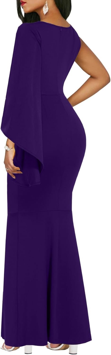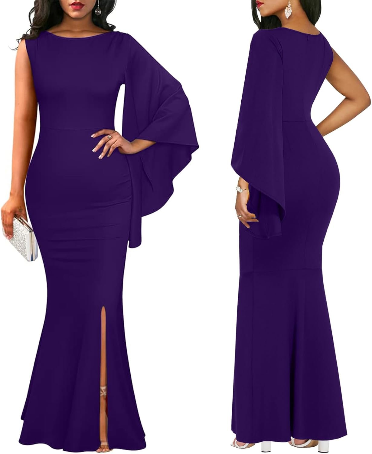 Women’s Formal Dress Elegant One Bell Sleeve Side Split Evening Party Wedding Guest Mermaid Sexy Long Dress