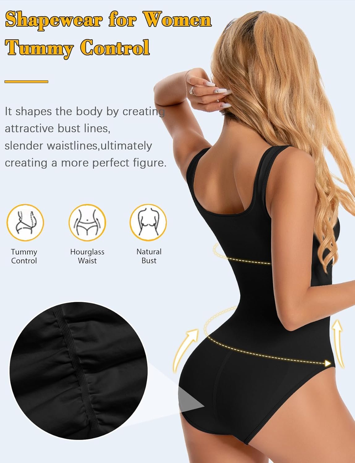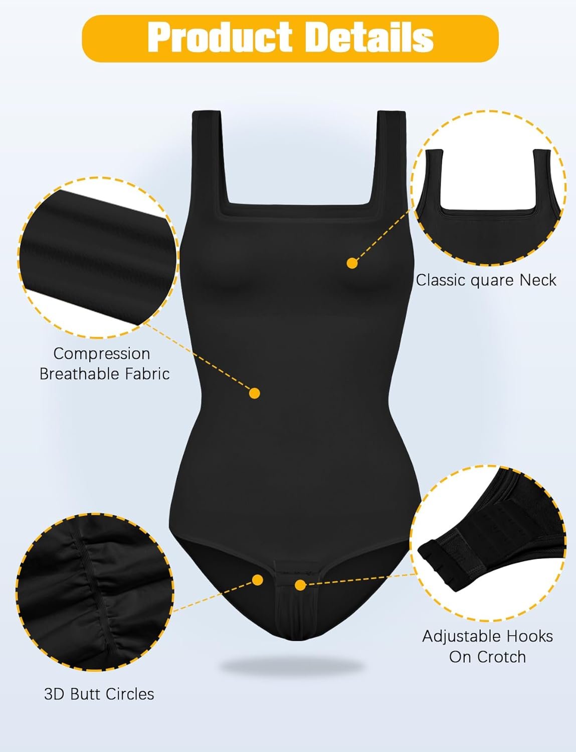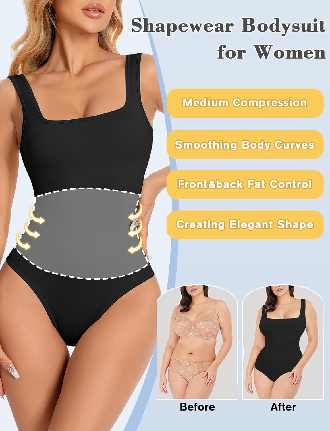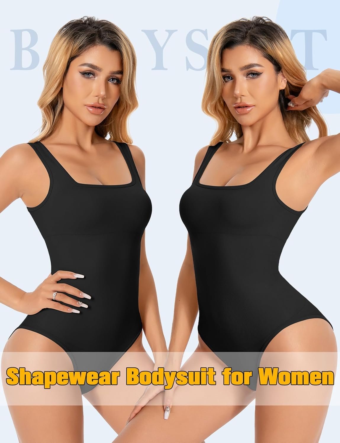 VVX Square Neck Bodysuit for Women – Tummy Control Seamless Tops Compression Butt Lifting Shapewear Bodysuits