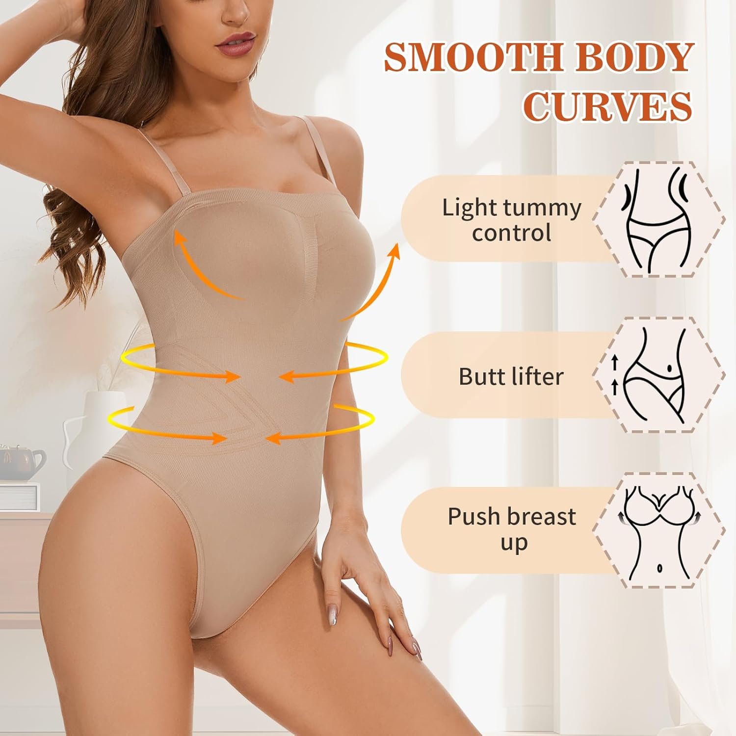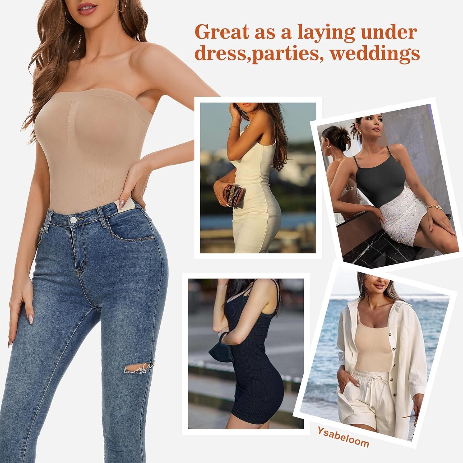 Ysabeloom Women’s Strapless Bodysuit Tummy Control Shapewear Seamless One Piece Leotard Tops