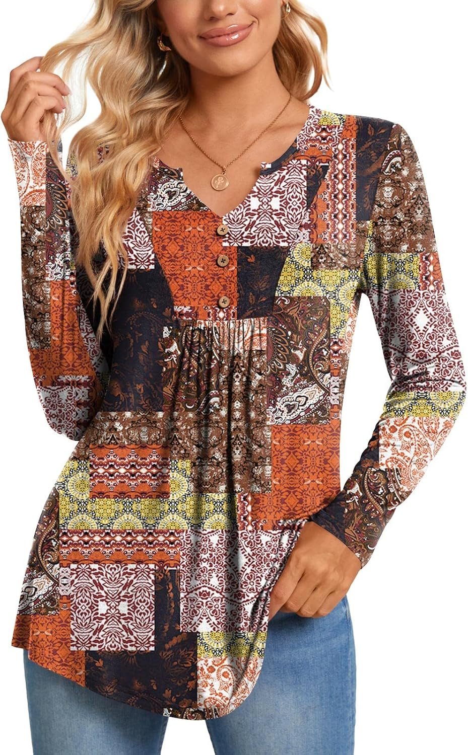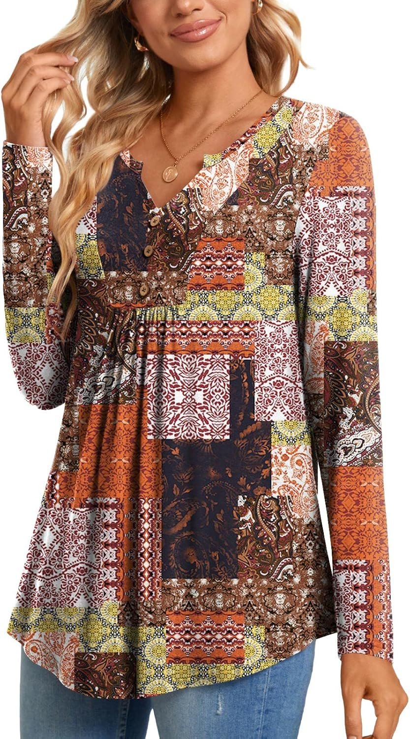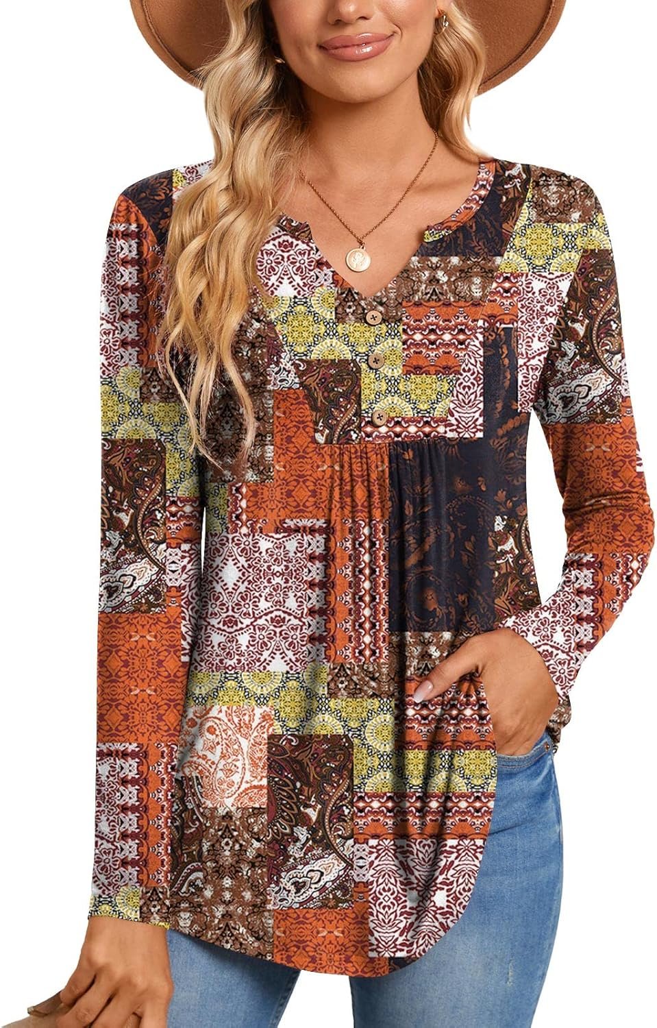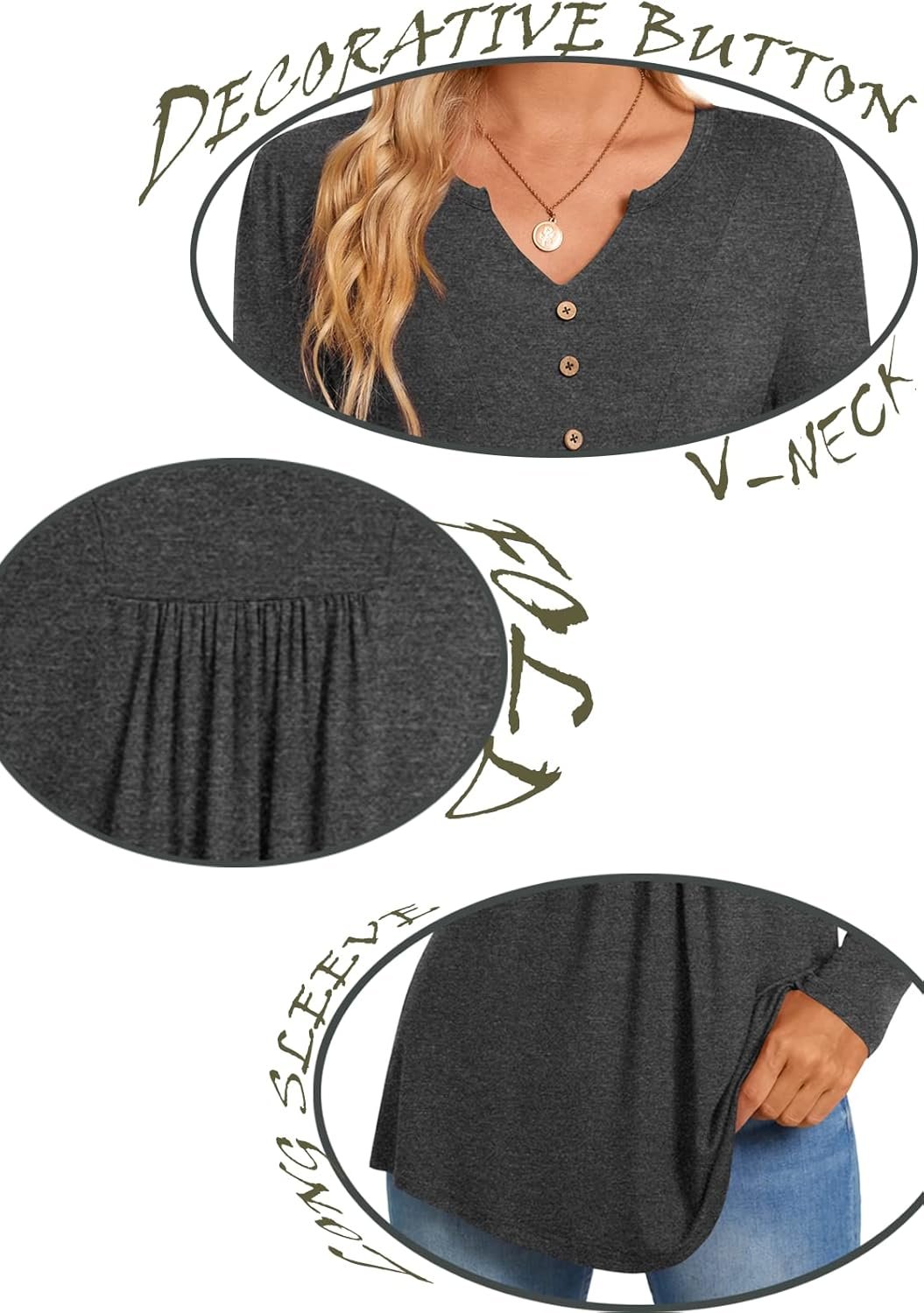 CATHY Long Sleeve Shirts For Women Loose Fit Dressy Henley Tops