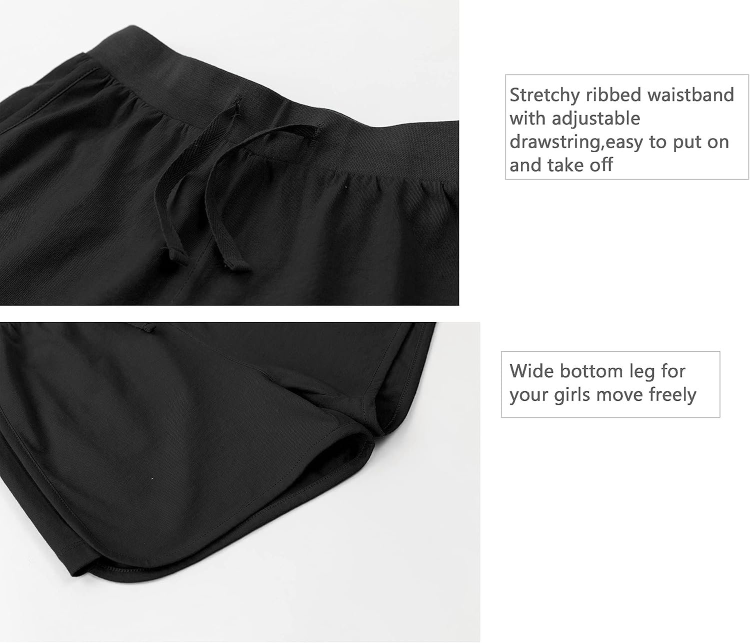 Comfortable Knit Jersey Fabric: This Girl’s athletic Shorts is made of Soft natural Cotton jersey with good breathability, skin-friendly, no fading or pilling after washing. Active shorts with great cutting and leaving roomy space for your girls to run, jogger, and exercise freely.