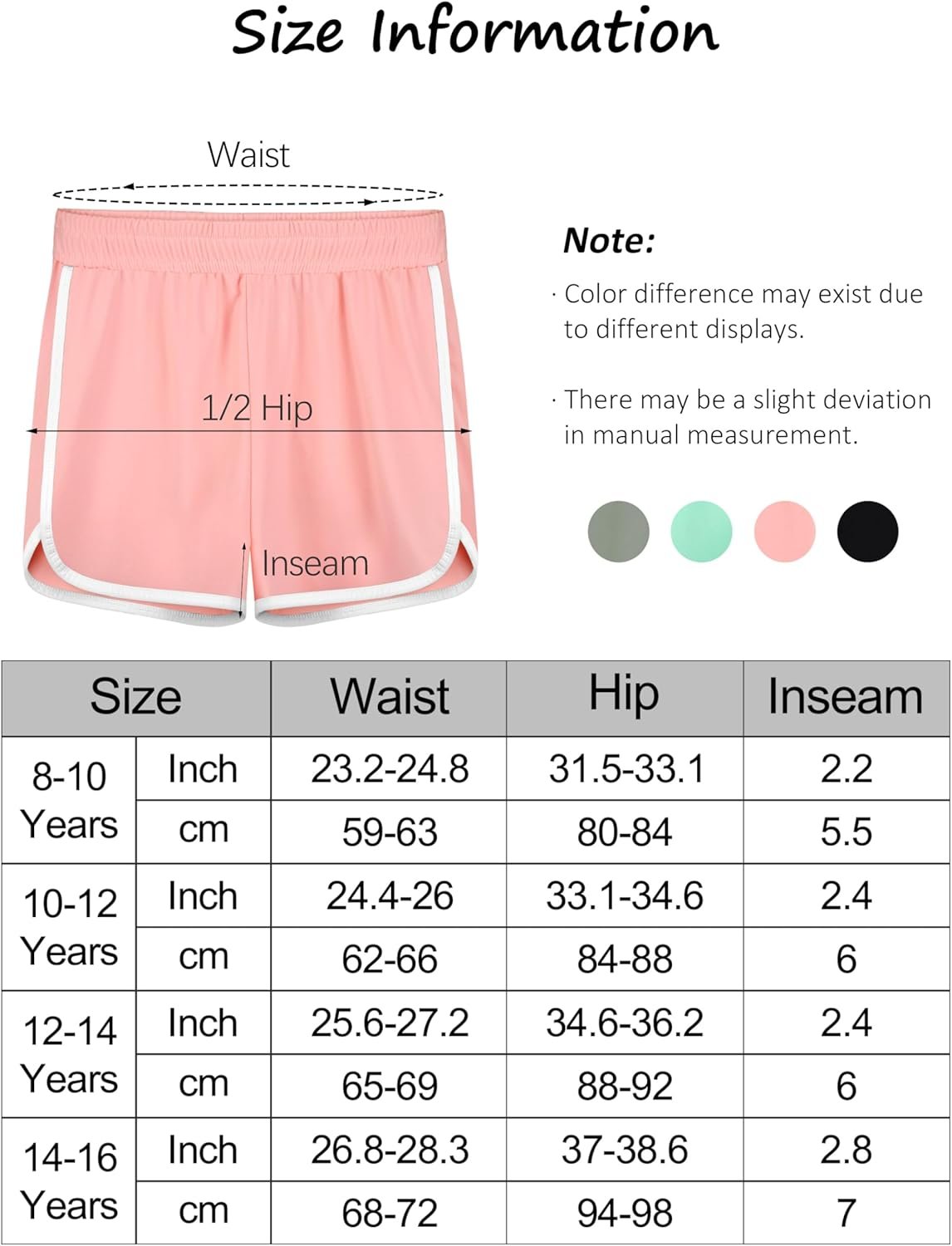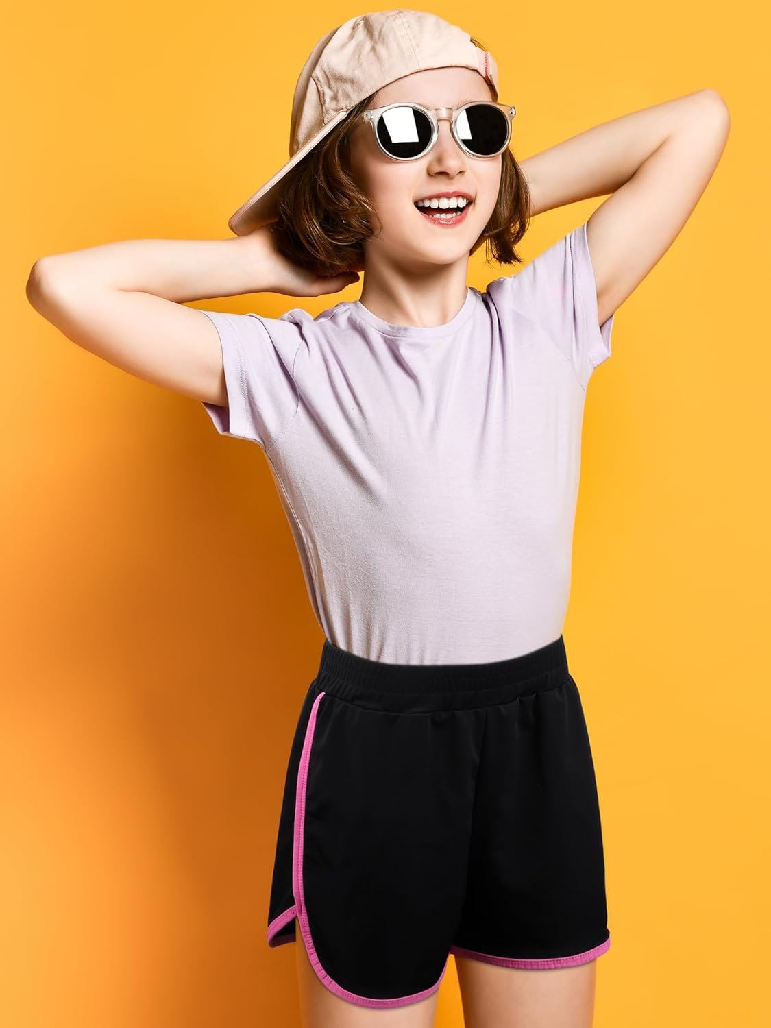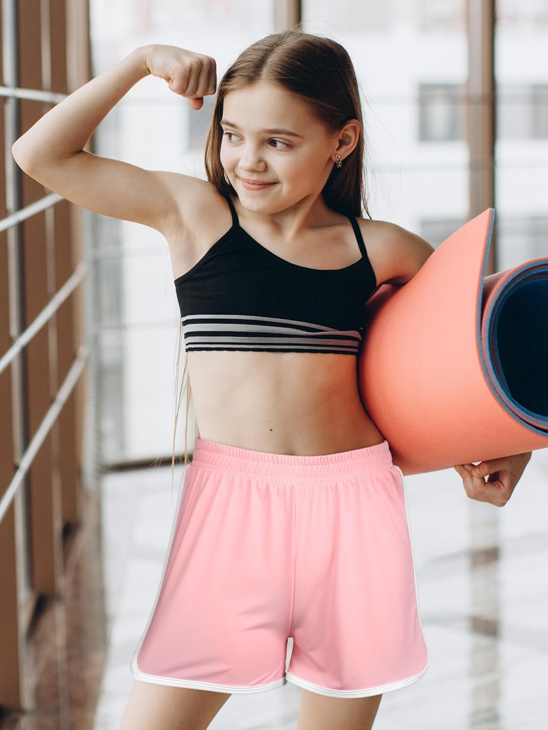 Resinta 4 Pack Youth Girls Athletic Shorts Quick Dry Active Shorts Big Girl Summer Sports Shorts for Running Dance Yoga