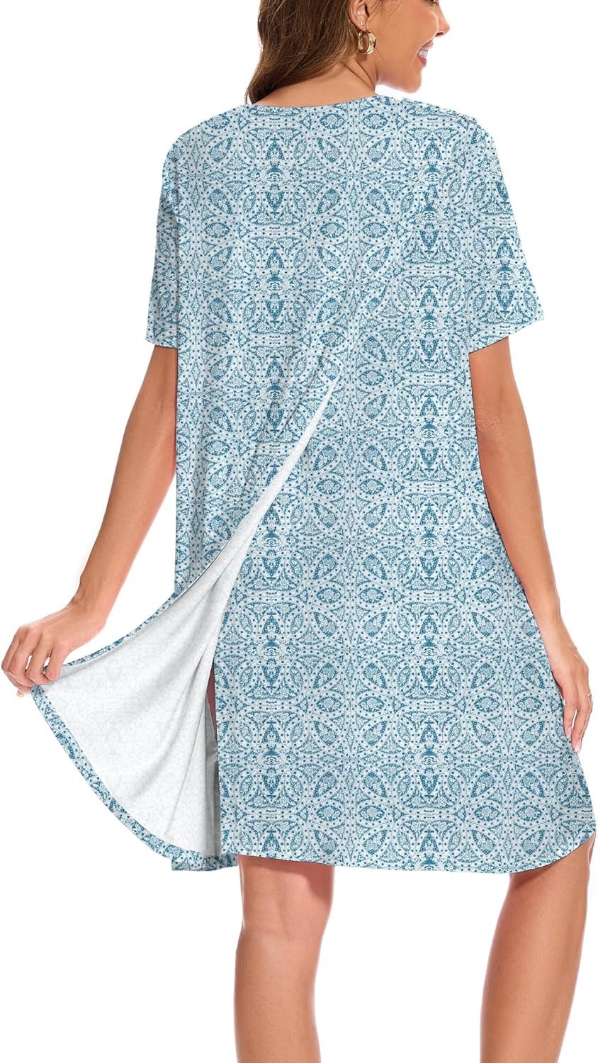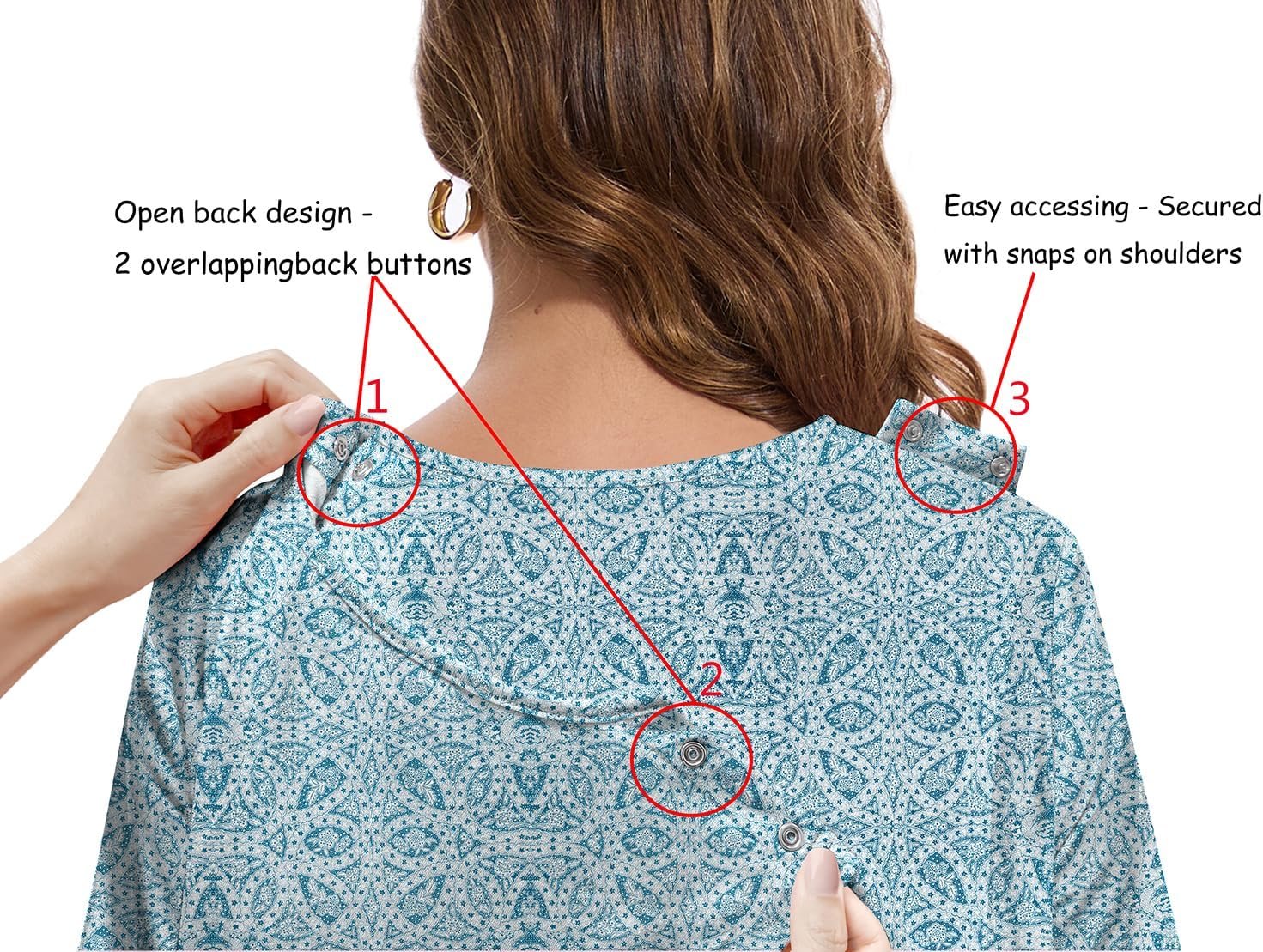 AVIIER Short Sleeve Nightgown for eldly Women Open Back Dress Nursing Gowns Post Shoulder Surgery Recovery SuppliesTear Away Snap Labor and Delivery Gown for Hospital Gown Going Home Outfit for Women Adaptive Clothing for Women Clothes after Rotator Cuff Surgery