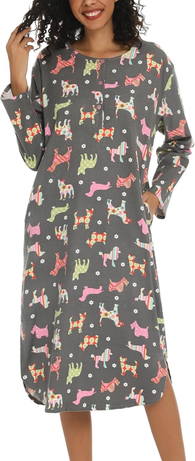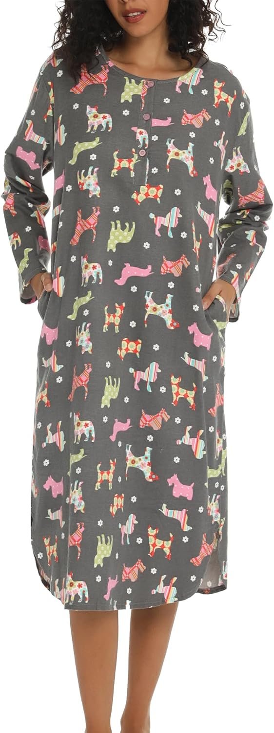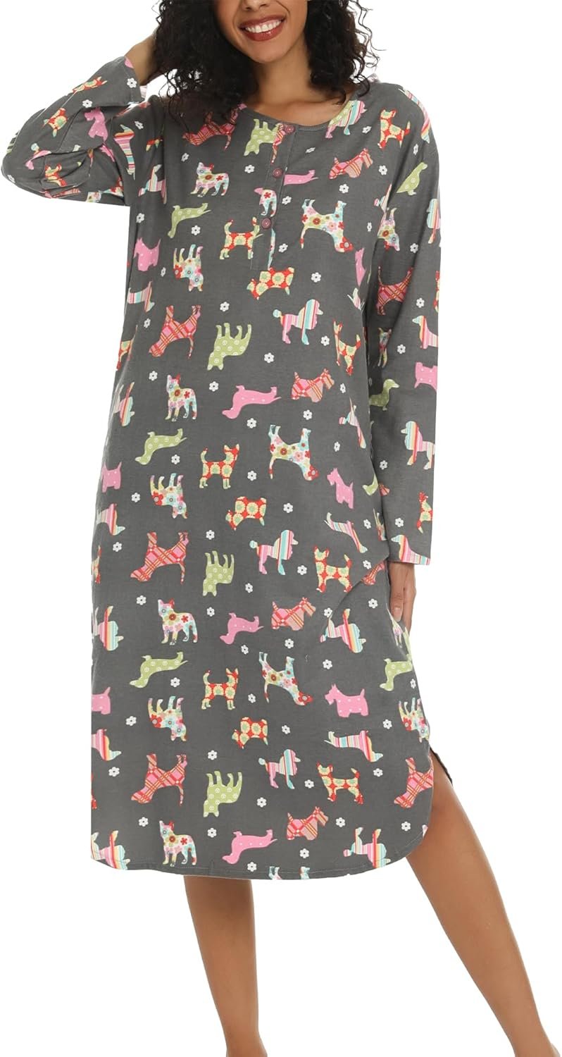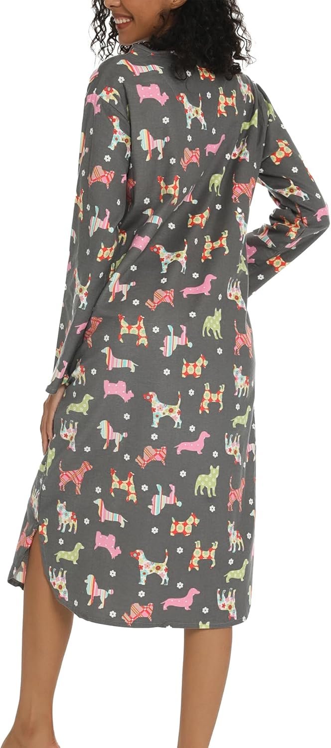 ENJOYNIGHT Womens Plaid Flannel Nightshirts Long Sleeve Night Shirt Button-Front