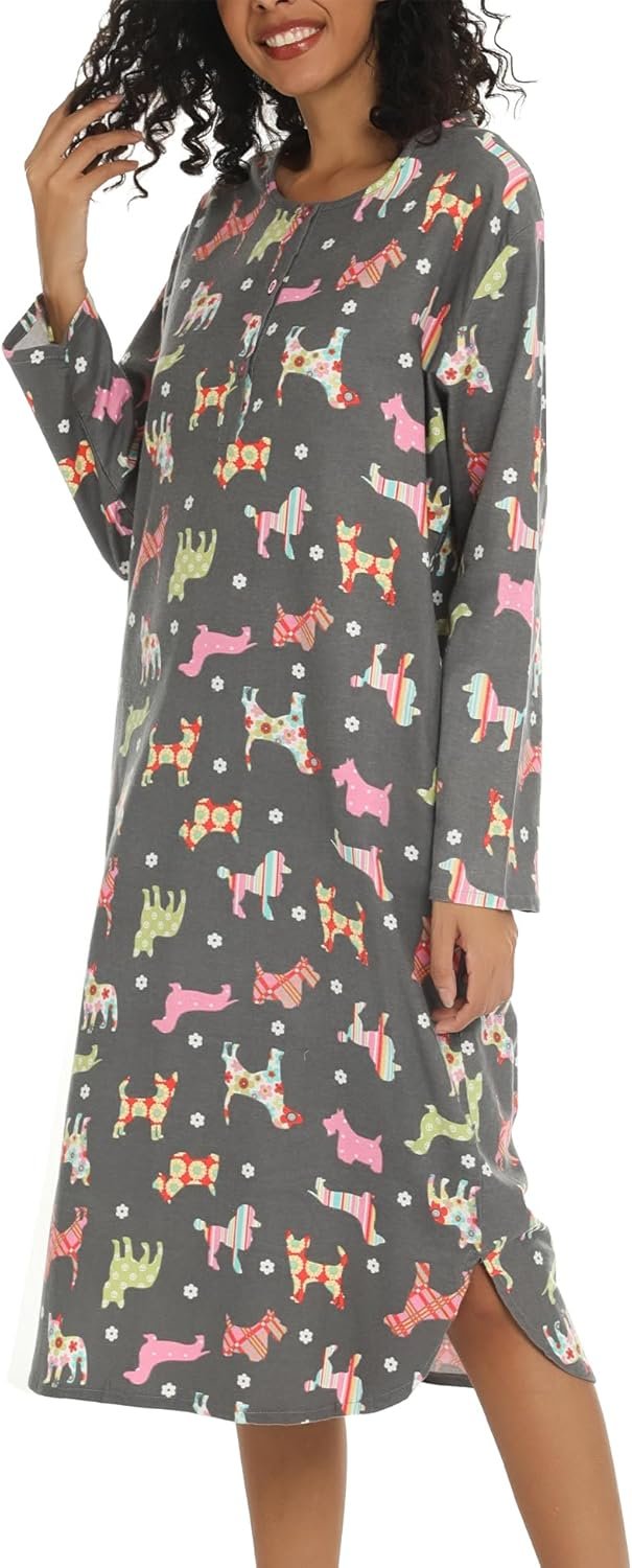 Ladies Sleeping Gown Button Placket, Winter Maternity Nursing Sleep Shirts