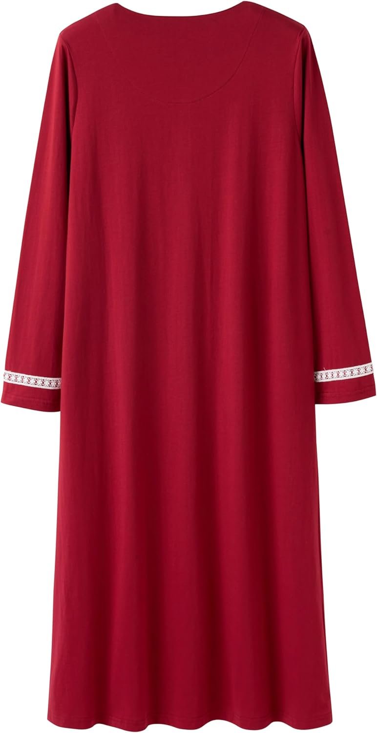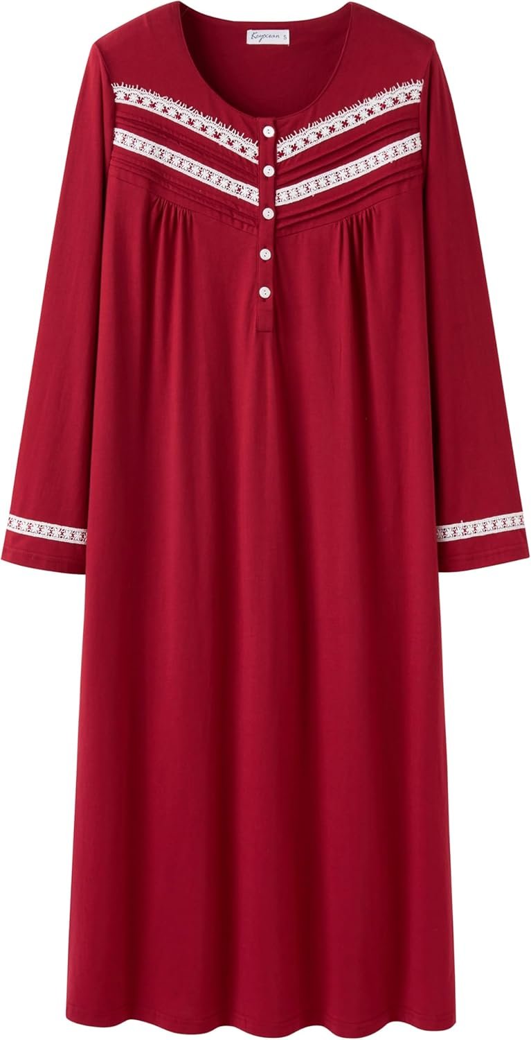 Made from premium all cotton, the Keyocean elegant long women’s nightgown features long sleeves and a round neckline. 100% cotton high-quality knitted fabric is soft, lightweight and breathable. The sleepwear for women keeps you sleep warm but not overheated. Available in a variety of style and size options, the cotton nighties for women are conveniently machine washable for outstanding longevity and impressive durability.