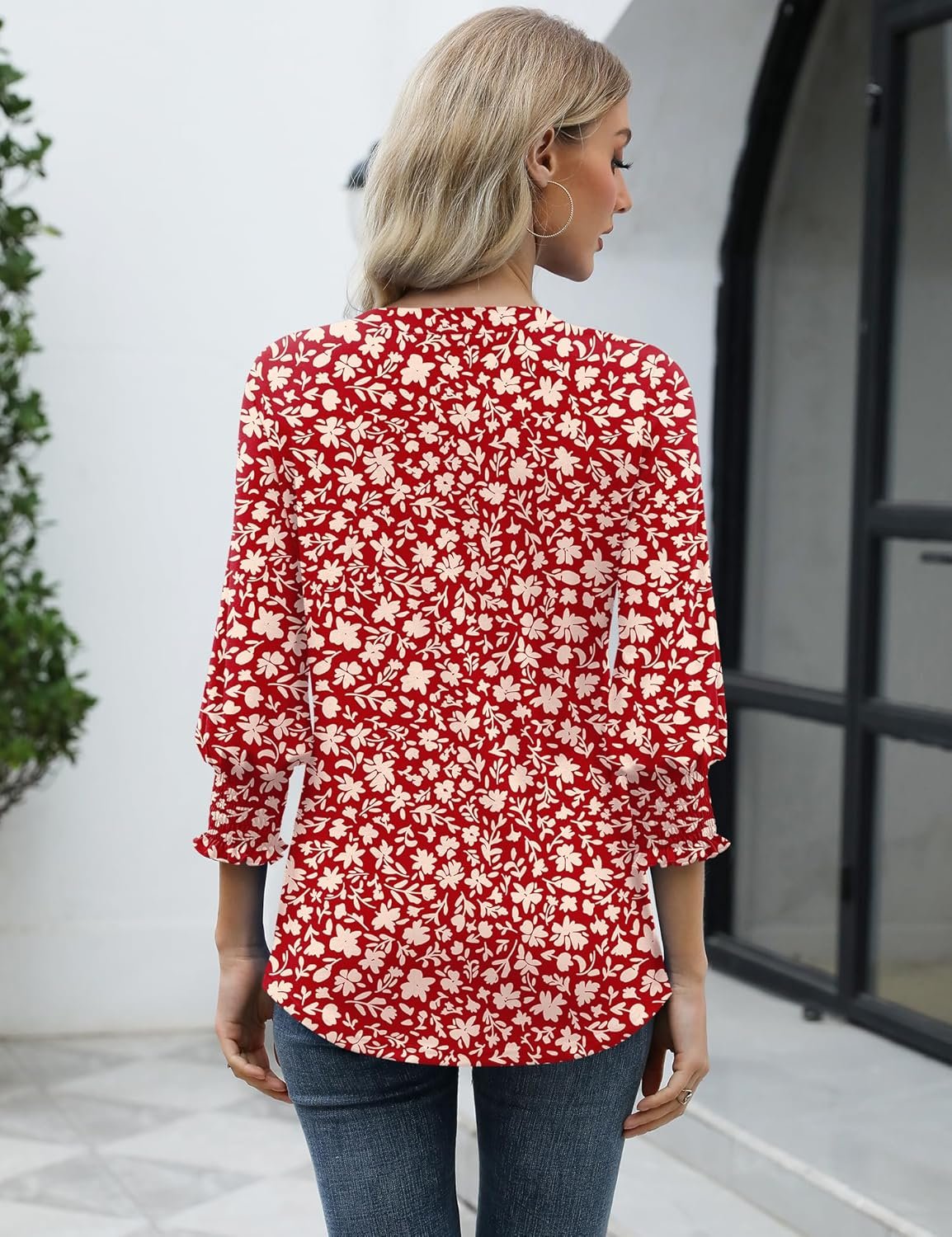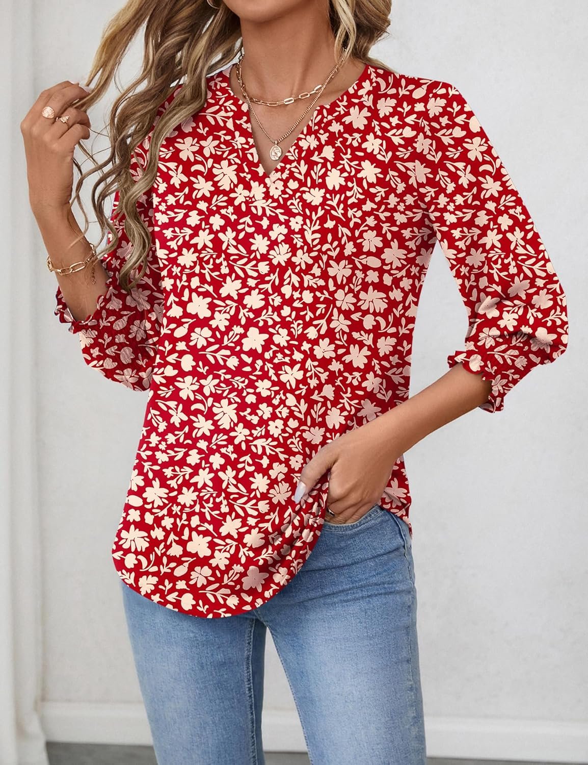 Women’s V Neck 3/4 Sleeve Tops Casual Tee Shirts 2025