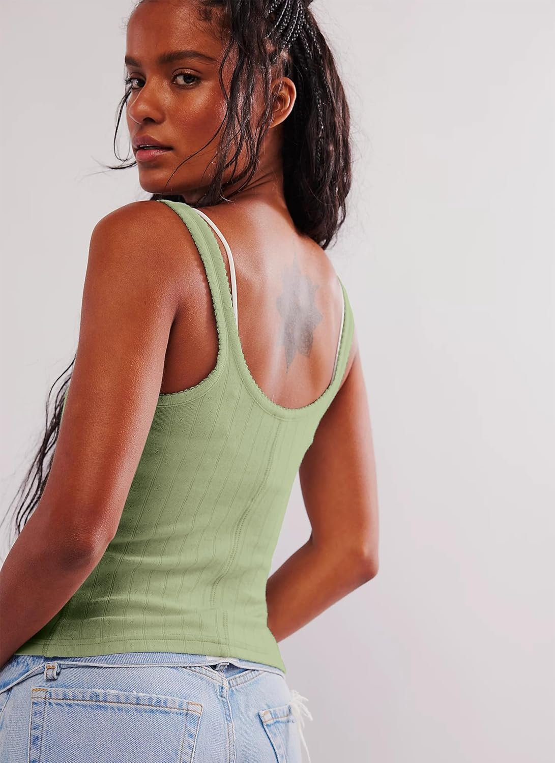 This versatile tank perfect for summer or to layer in the fall, can be paired with jeans, shorts, skirts, trousers, cargo pants, slim fit joggers, lace bra or lacey bralette underneath.