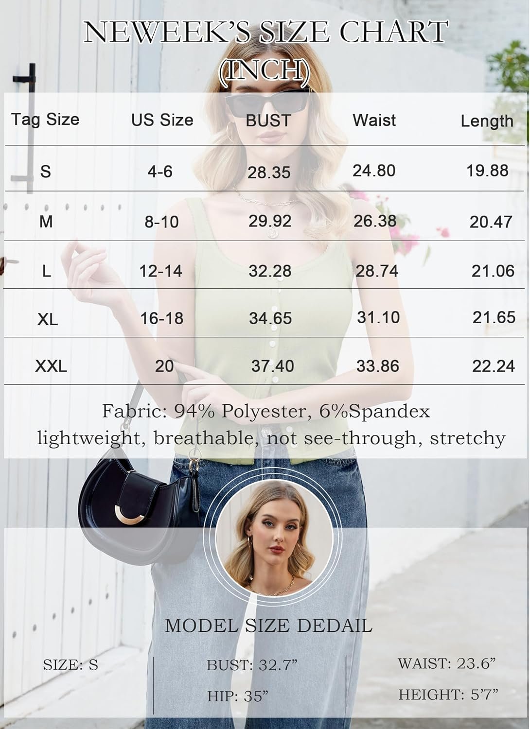 Neweek Womens Tank Tops Size Chart