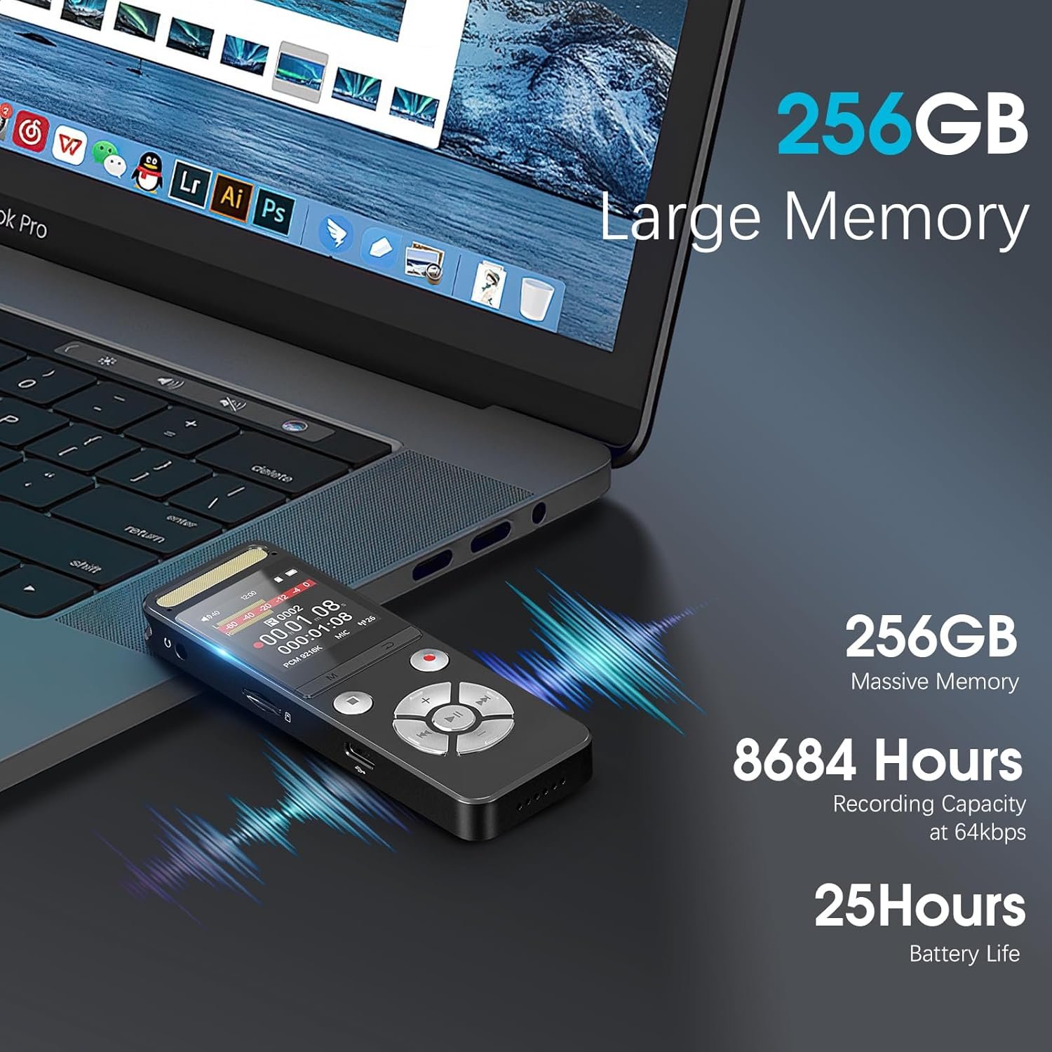 256GB Memory Storage & Long Battery Life: With massive 256GB storage capacity, audio recorder can store up to 8684 hours of recording files (64kbps), and the Built-in 700mAh rechargeable battery supports up to 30 hours continuous recording.Thanks to the large capacity, it’s also an excellent MP3 player and portable flash drive, you can easily switch playback between recordings and musics, which is very suitable for students
