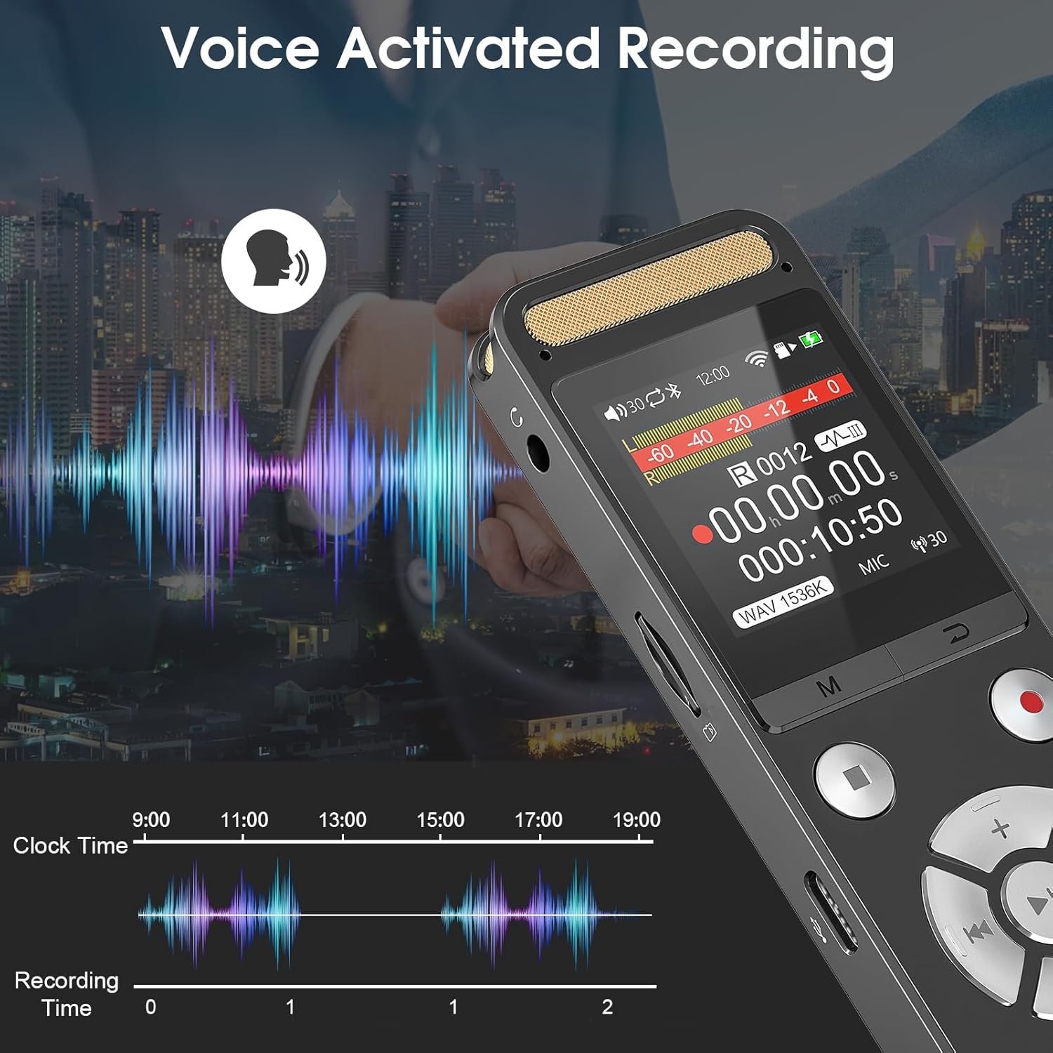 Multi-Function Recorder: Supports Voice Activation, Timed Recording, Line-in, Segmental Recording, adjustable AGC, Manual Level Control, AB Point Repeat Playback, Variable speed playback, Password, Screen Lock , automatically save files when the battery is low, MP3 Player etc. These rich features making it a great choice for students, journalists, business people, seniors, professor, writer, blogger, even used as a EVP digital voice recorder for ghost hunting activities