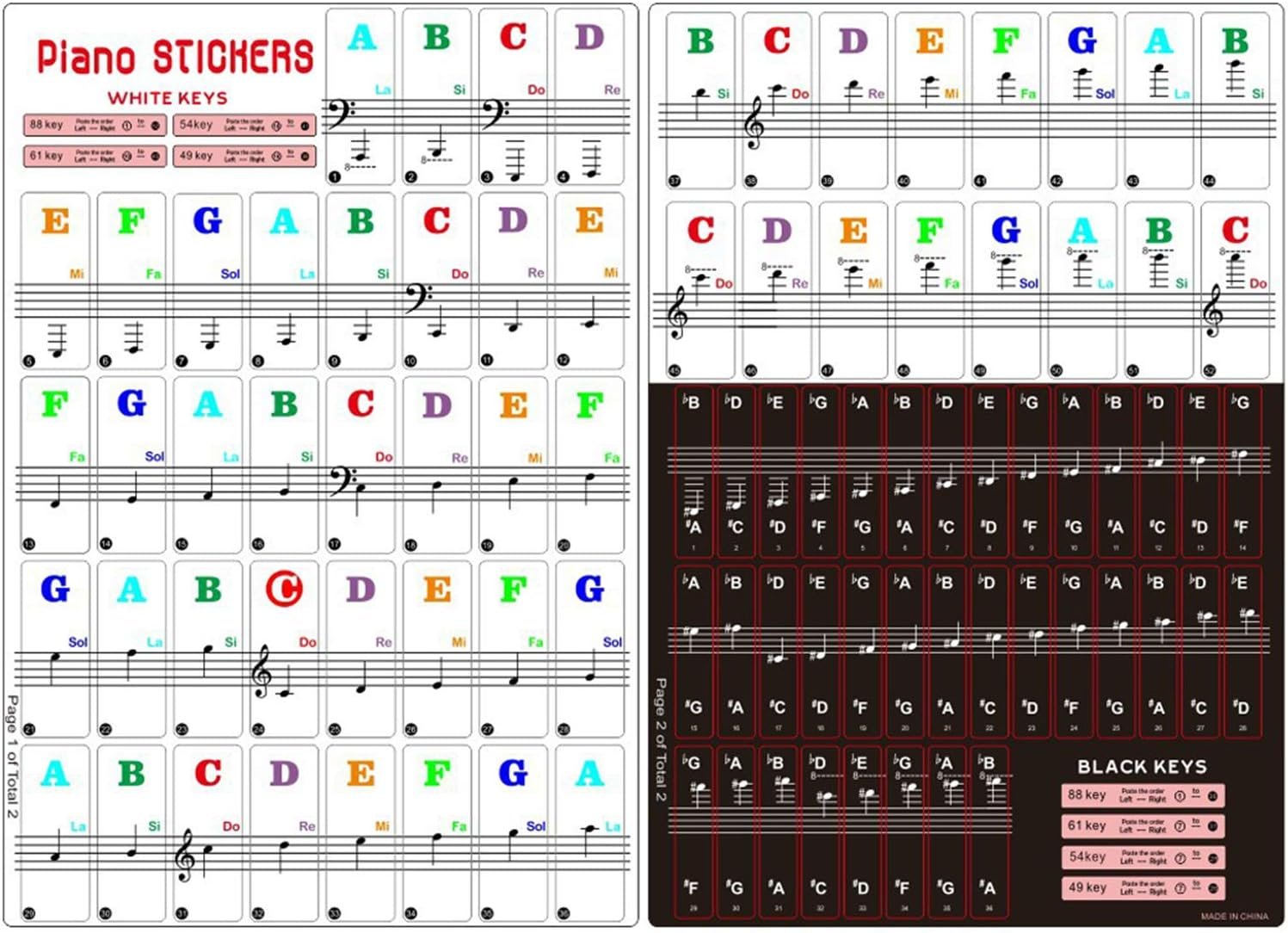 🎹 Size: Suitable for all 88/61/54/49/37 key pianos and keyboards. White key sticker 4.0cmX1.55cm(1.57”X0.61”). Black key sticker 3.9cmX0.85cm(1.54”X0.33”).