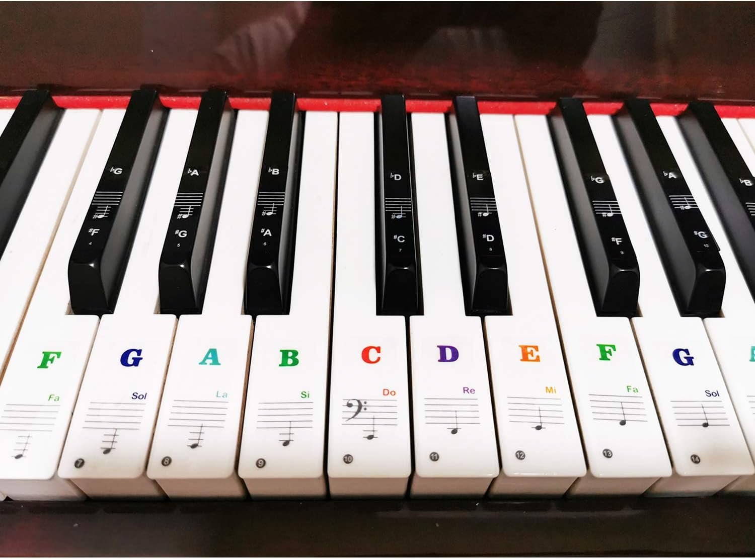 🎹 Durable: The letters are printed on the backside of the transparent sticker, so they can withstand constant impact of fingers, will be always legible and never fade. Waterproof, when the surface is dirty, simply wipe it with a damp cloth to clean.