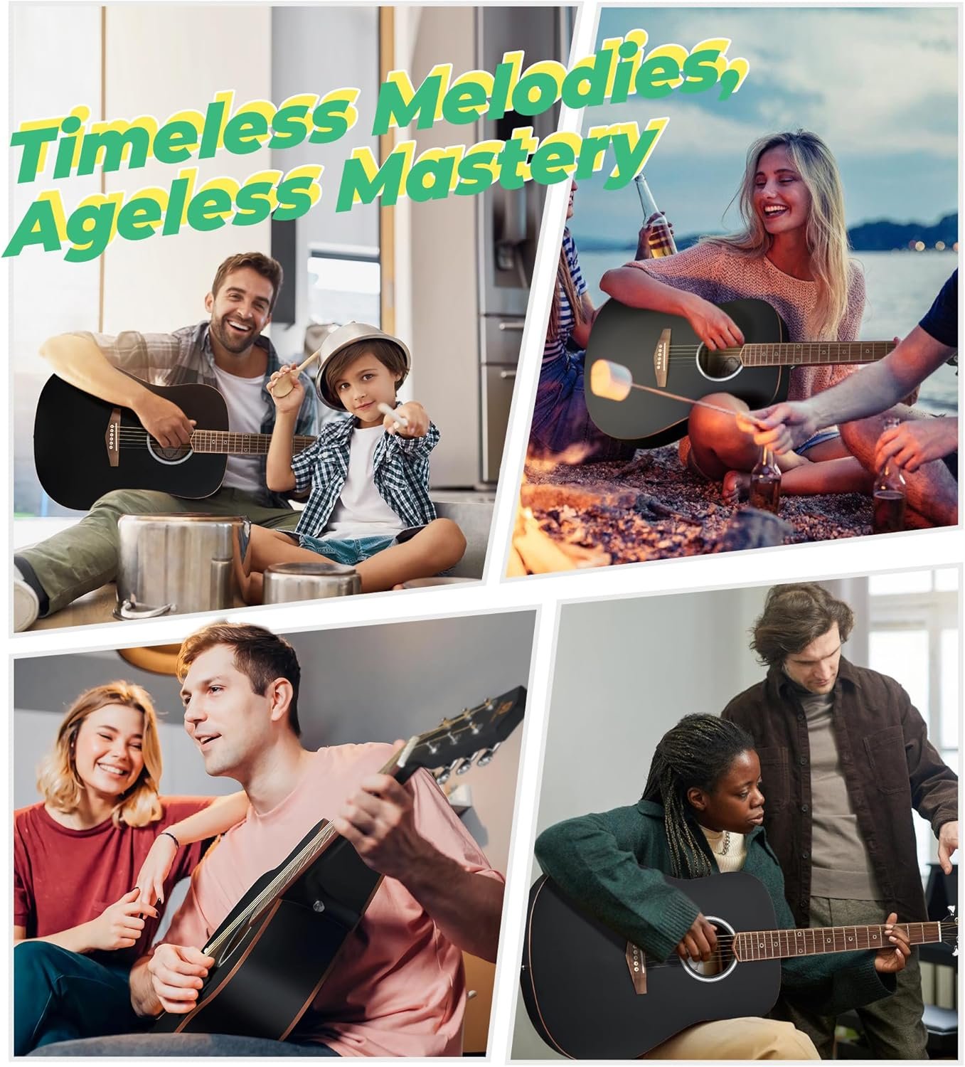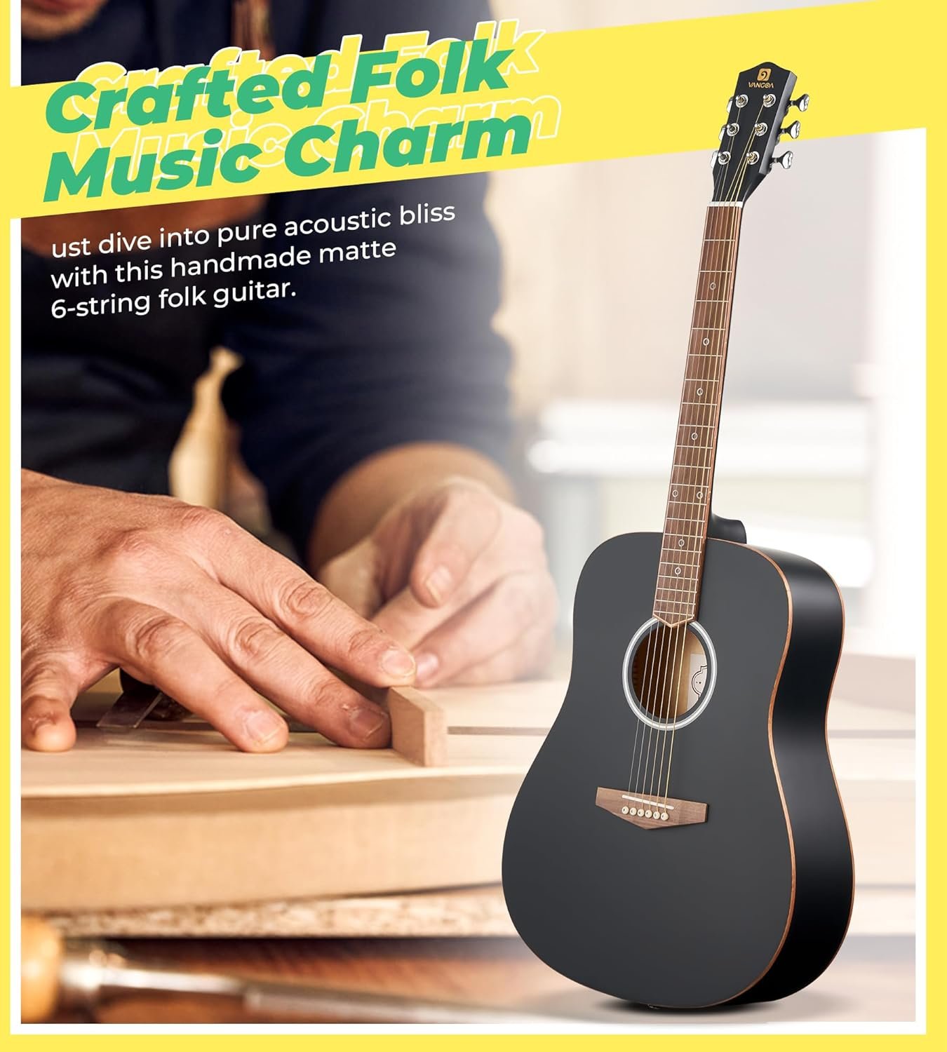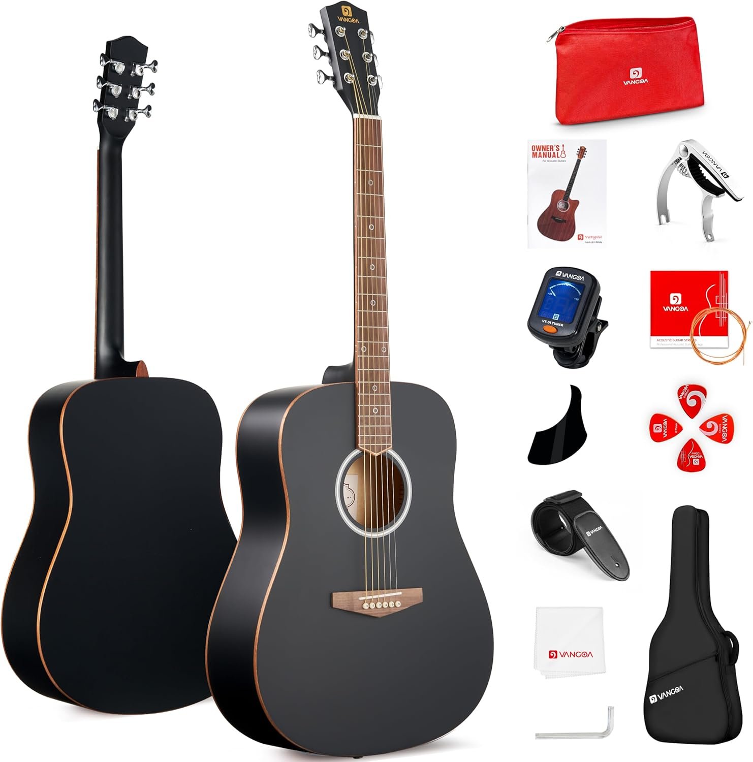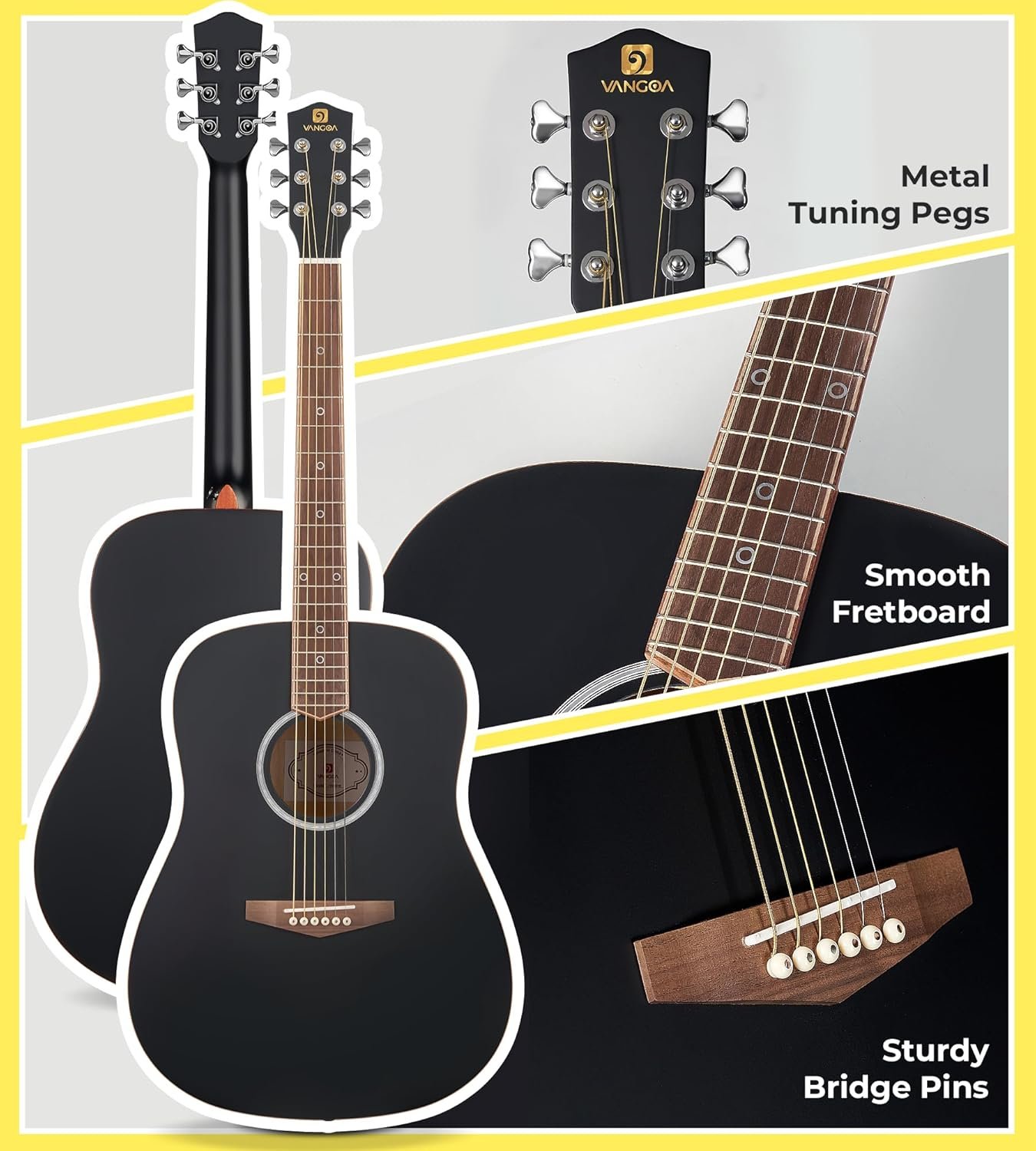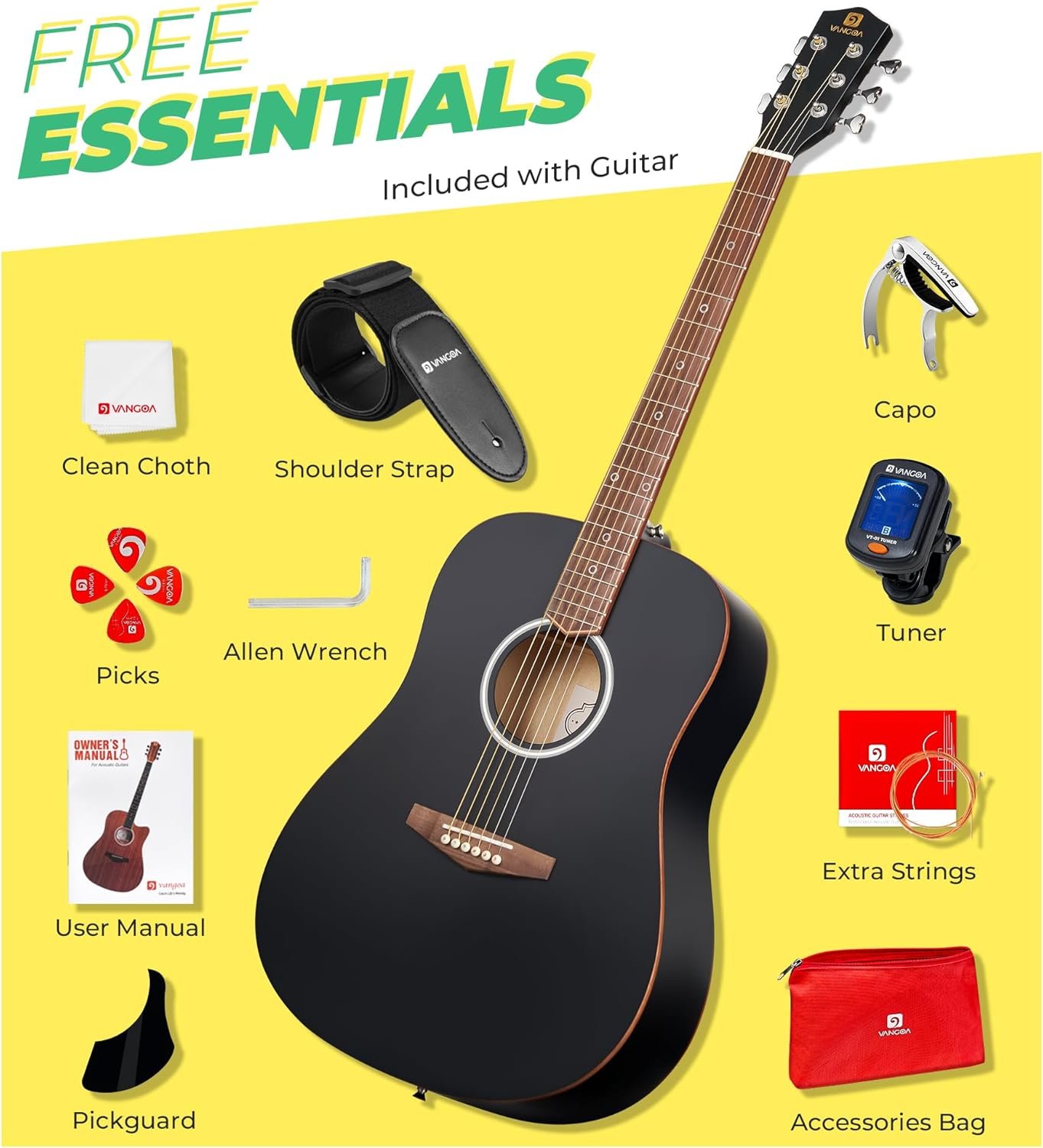 VANGOA 41 Inch FULL SIZE BLACK ACOUSTIC GUITAR FULL SET FOR ADULT BEGINNERS PROS