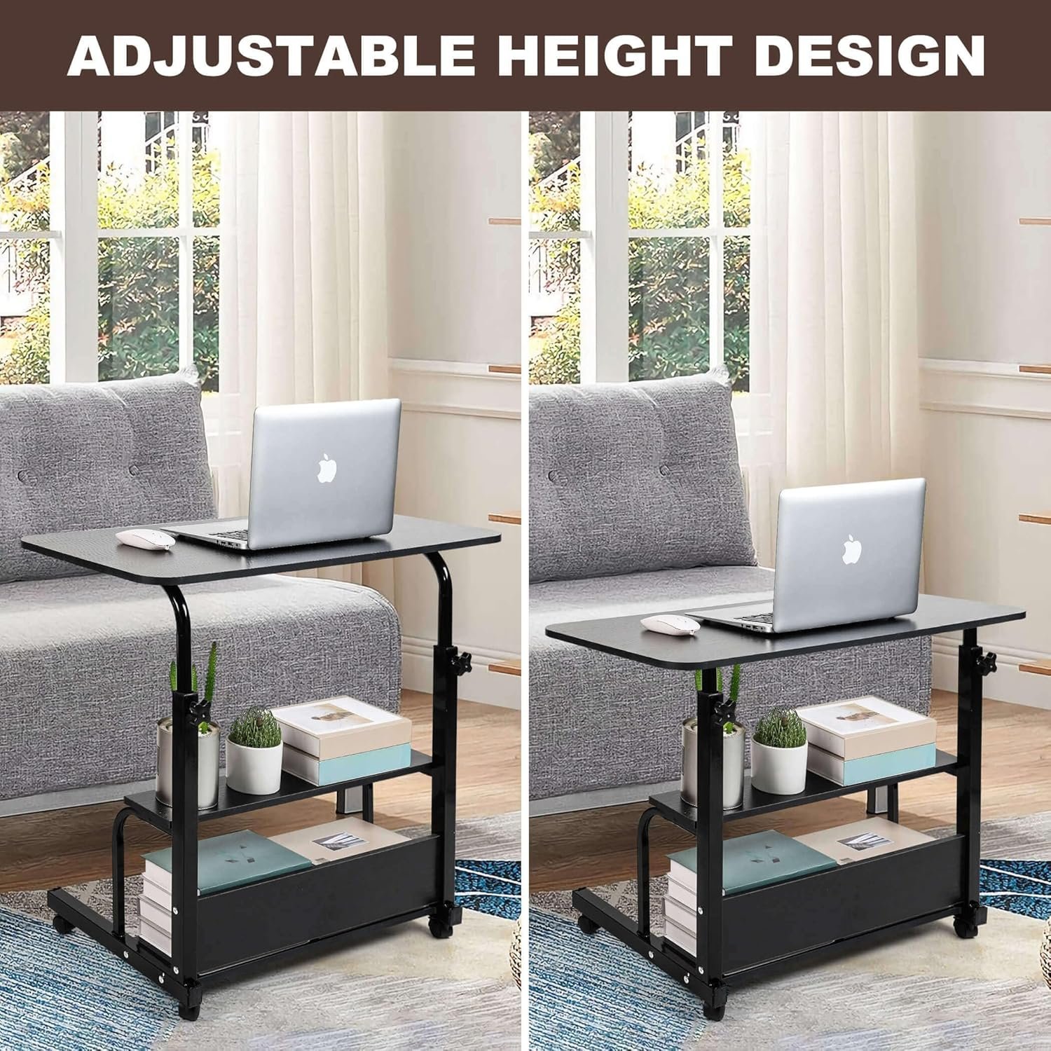 【Adjustable Height&Easy Move】: This kind of mobile laptop desk can be adjusted to your ideal position from 24″ to 35.4″. You can use the adjustable height desk and the mobile computer desk which have 4 smooth wheels can also make desk move wherever you want.
