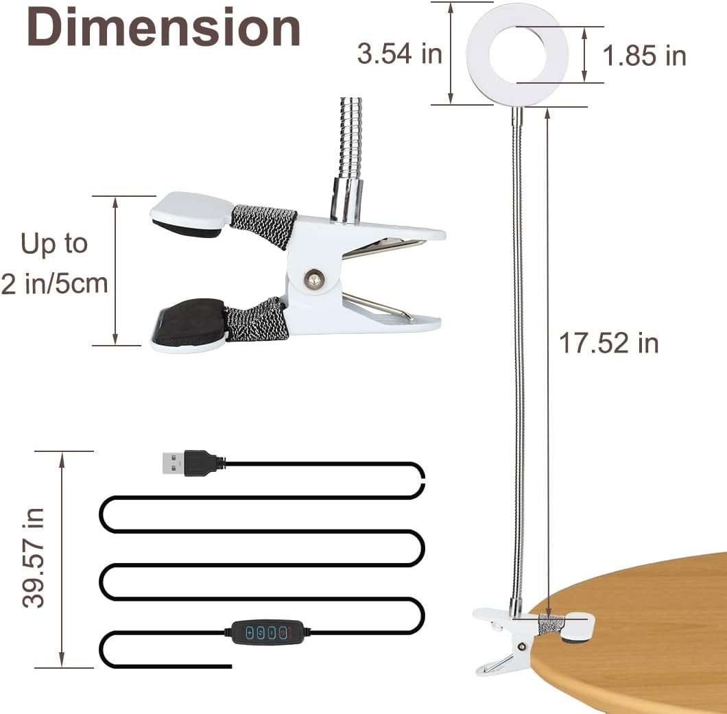 【Eye-caring Soft Ring Light】Made with premium LEDs, the LED reading lamp provides no flickering and no dazzling light, protect your eyesight and reduce your eye strain from long reading. This clip-on LED ring light provide soft adequate supplement lighting, can work perfect as computer lighting for video conference and zoom meeting.