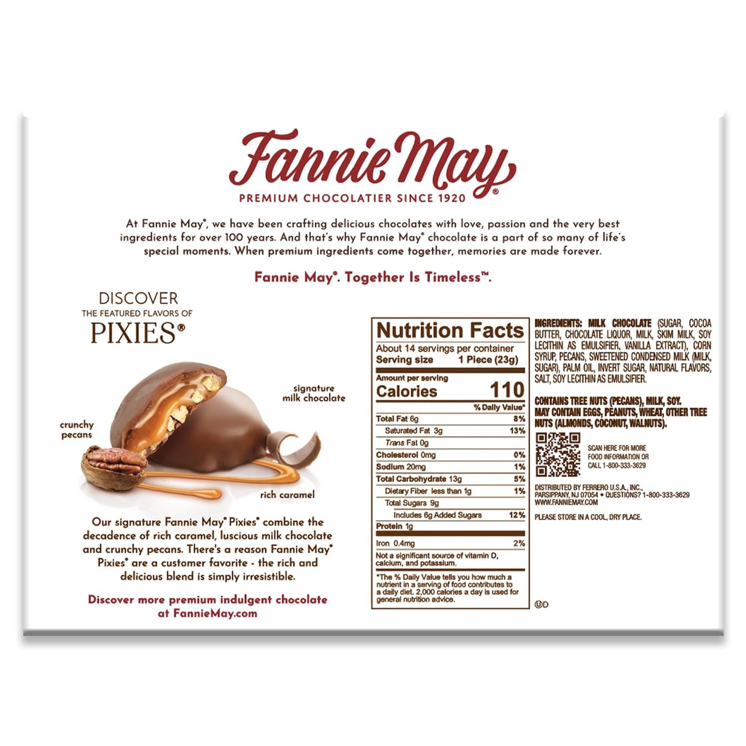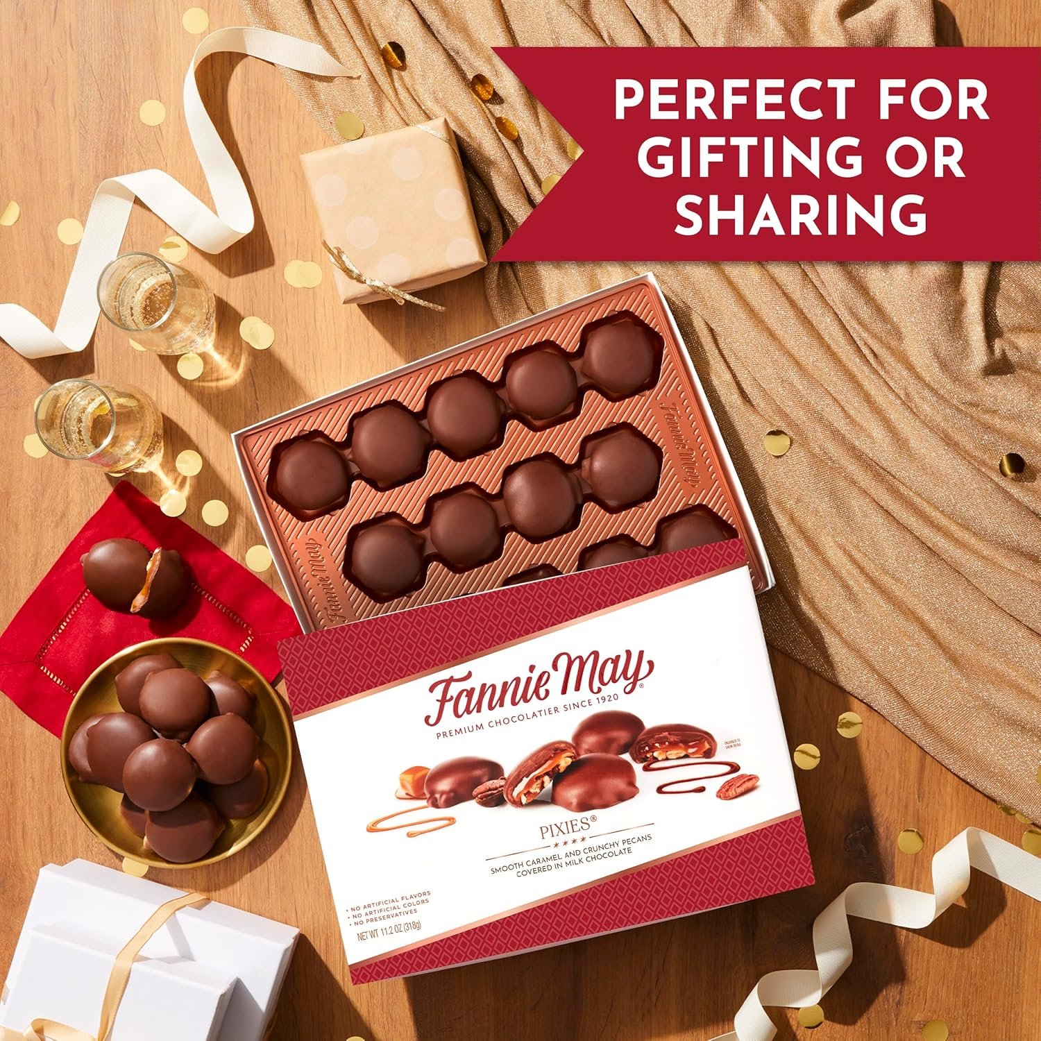 Fannie May’s Mini Pixies combine rich, hand-poured caramel with lightly roasted, crunchy pecans and luscious milk chocolate to craft a premium chocolate candy experience that delights with decadence