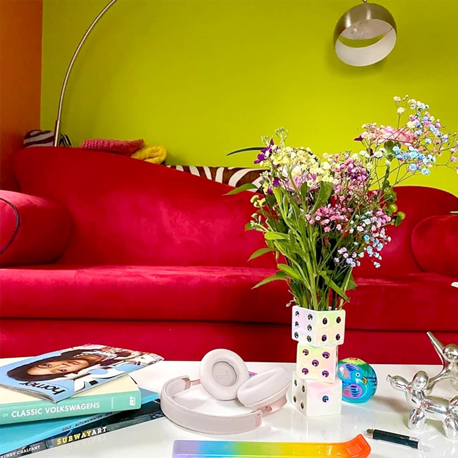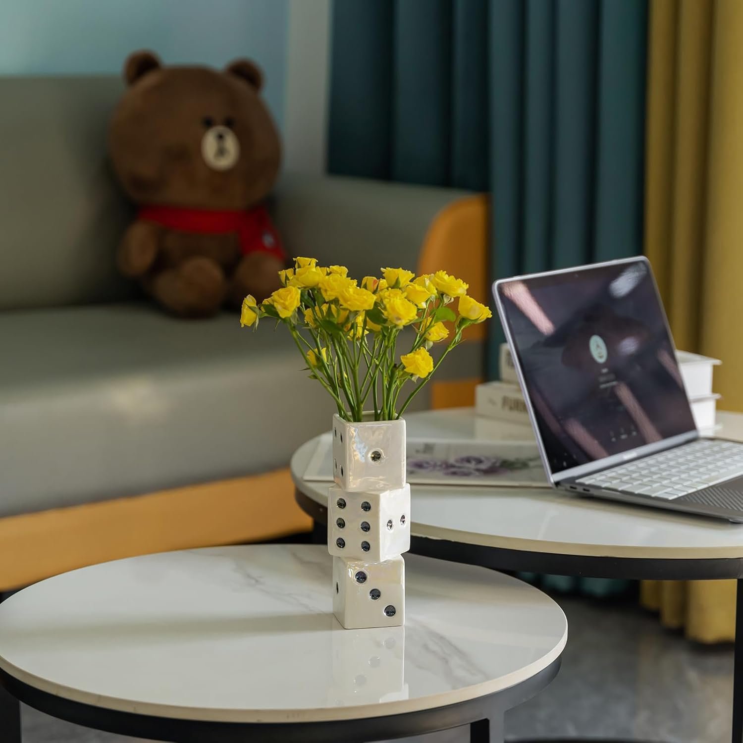 🎲【Suitable for Any Environment】: With its captivating design, our dice vase seamlessly blends into any atmosphere or modern setting. It is a versatile and trendy accent piece that adds a touch of sophistication to any room.