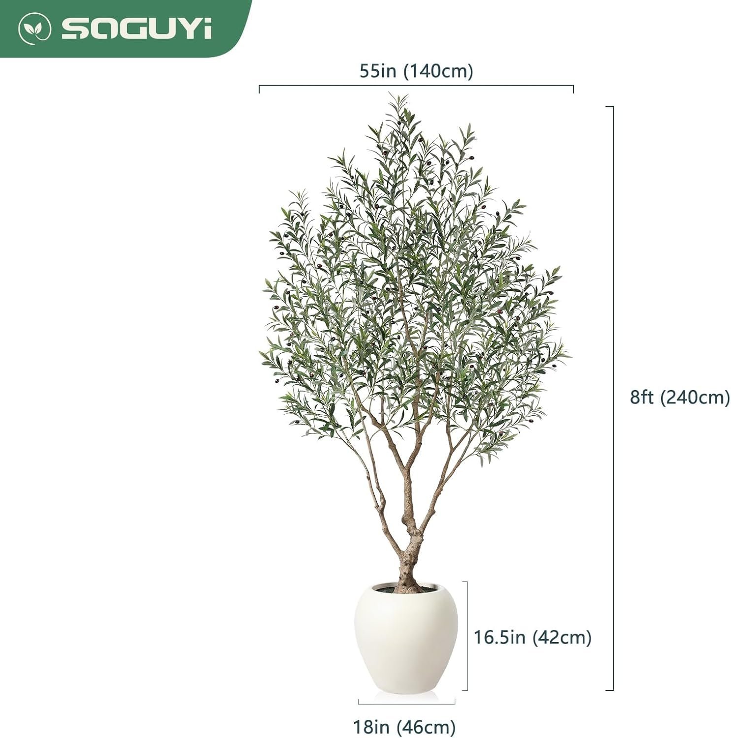 Standing at an impressive 8 feet, the SOGUYI faux Olive Tree is a masterpiece of lifelike design. The olive tree’s luxurious presence is complemented by a vintage Greek-inspired planter, adding a touch of Mediterranean elegance and timeless charm to any space