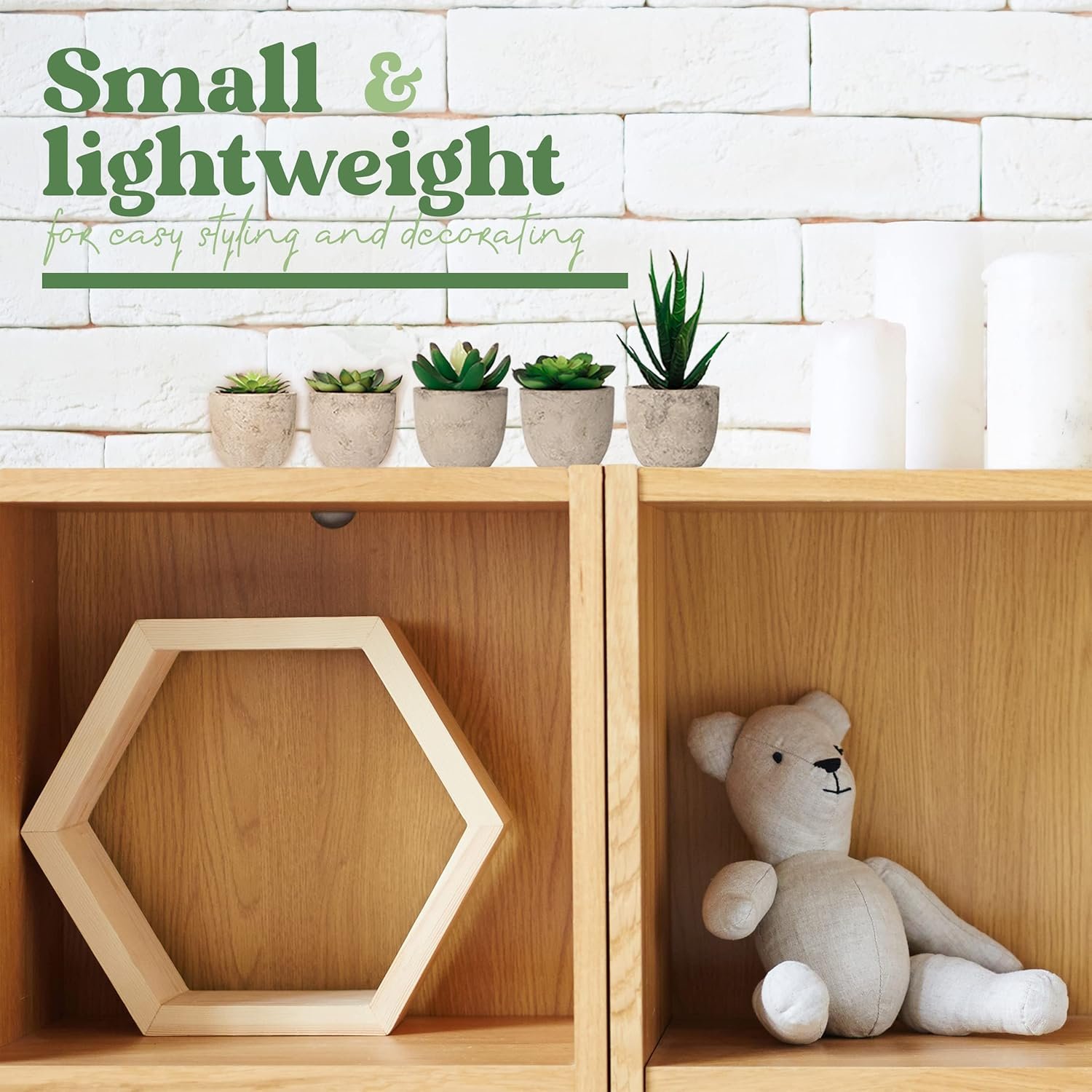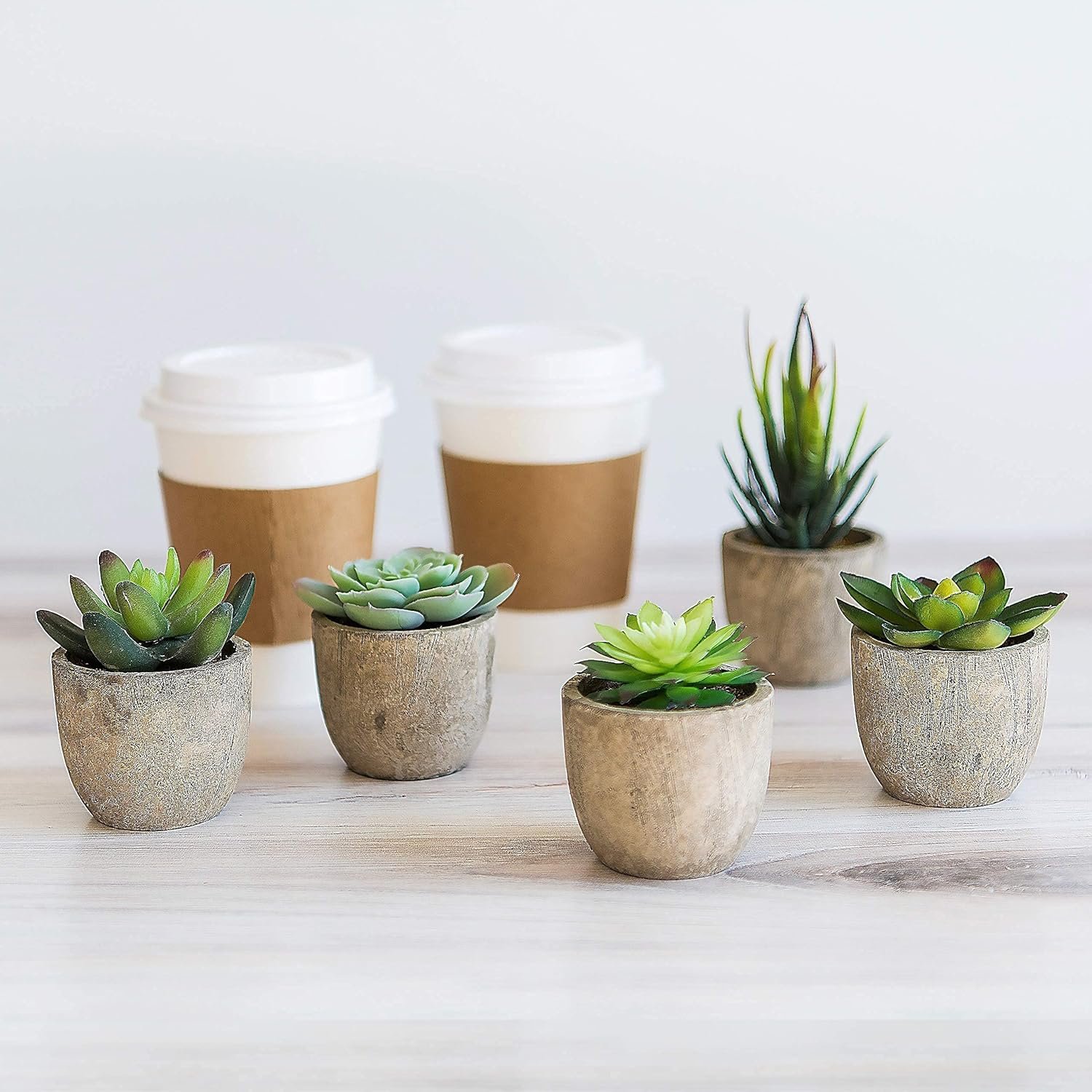 SMALL & LIGHTWEIGHT FOR EASY STYLING – Our mini succulent plants are just the right size for no-fuss decorating. Each fake plant is approximately 2.25 inches L x 2.25 inches H x 2.25 inches W and features a lightweight base for hassle-free rearranging. NOTE: Pot base is made of paper mache and is not waterproof. Do not place in water.