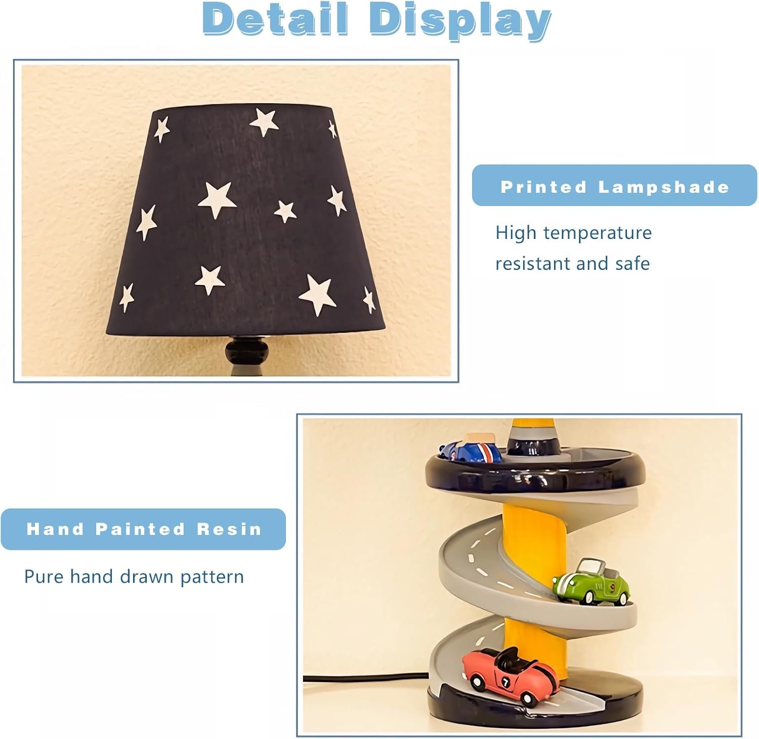 Whimsical Design: Add charm to your child’s room with our adorable racing car bedside table lamp. Crafted from high-quality resin for durability.