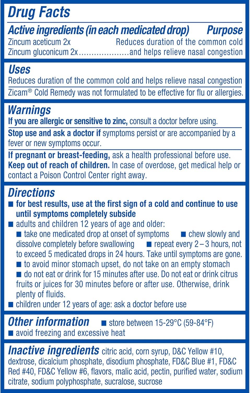 Zicam is completely different from most other cold remedies because it actually shortens colds versus just temporarily relieving symptoms. These soft, chewy drops, made with zinc, will shorten a cold when taken at the first sign.