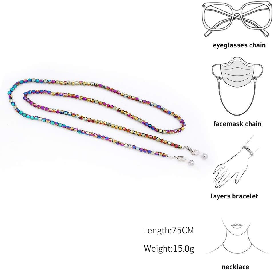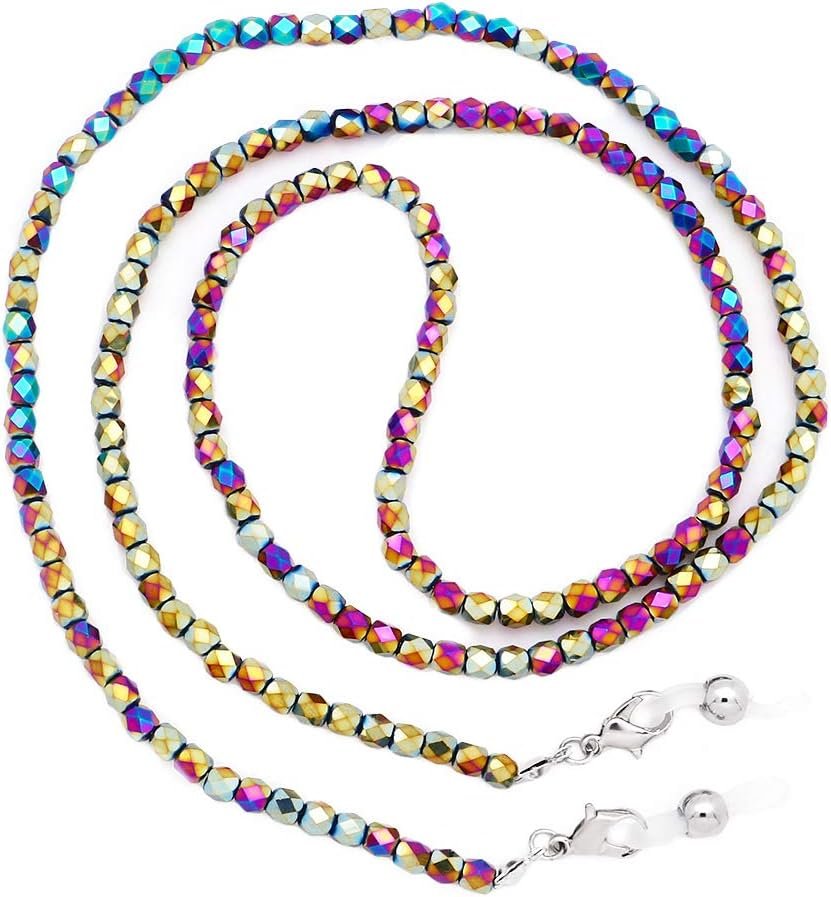 This simple and elegant lightweight eyeglass chain features a beautiful mix of different colored 3mm seed beads.