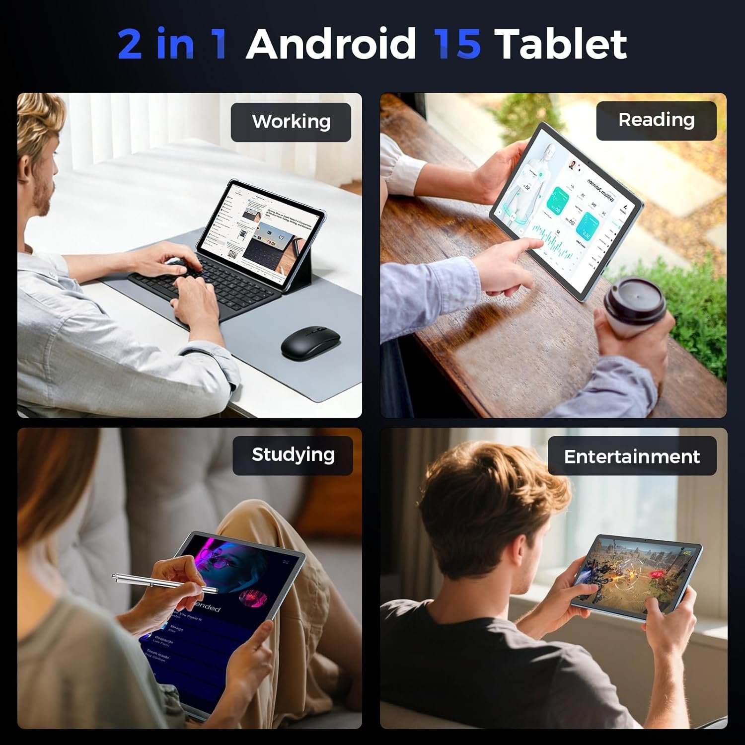 【24(8+16)GB RAM + 256GB ROM】Android 15 tablet with keyboard is equipped with 24GB RAM (8GB physical memory + 16GB virtual boost), so the P80 tablet pc enables effortless work-play balance and lag-free multitasking. 256GB built-in memory is capable of storing over 50,000 photos, 300+ HD movies, or a full collection of e-books. Storage can be further expanded up to 2TB via a microSD card, eliminating the need for frequent file deletion