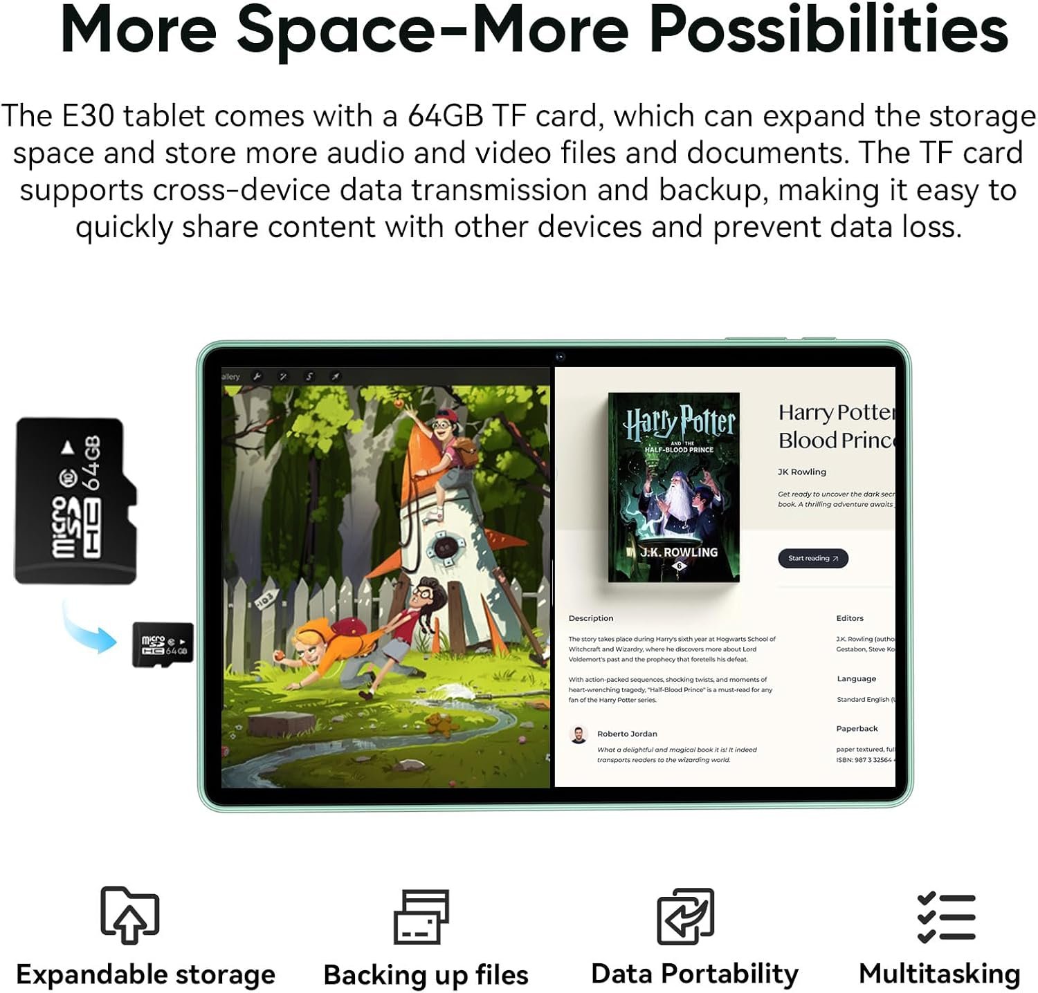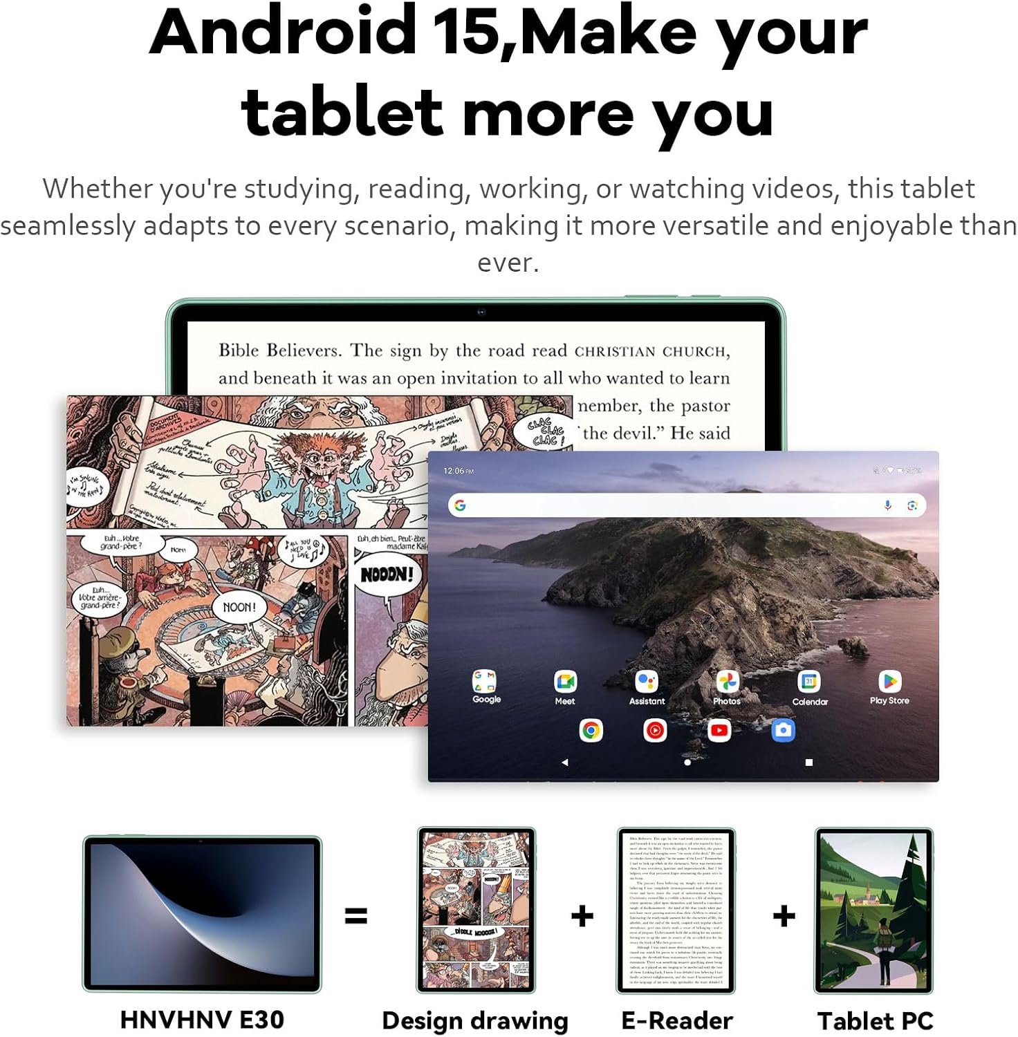 【Fully Upgraded in 2025】E30 tablet is equipped with the latest Android 15 system and a new T7200 octa-core processor with a processing speed of up to 2.0GHz, ensuring wider application compatibility, faster startup time and better response speed. The new system provides more customization, privacy and security options, and says goodbye to annoying ads.