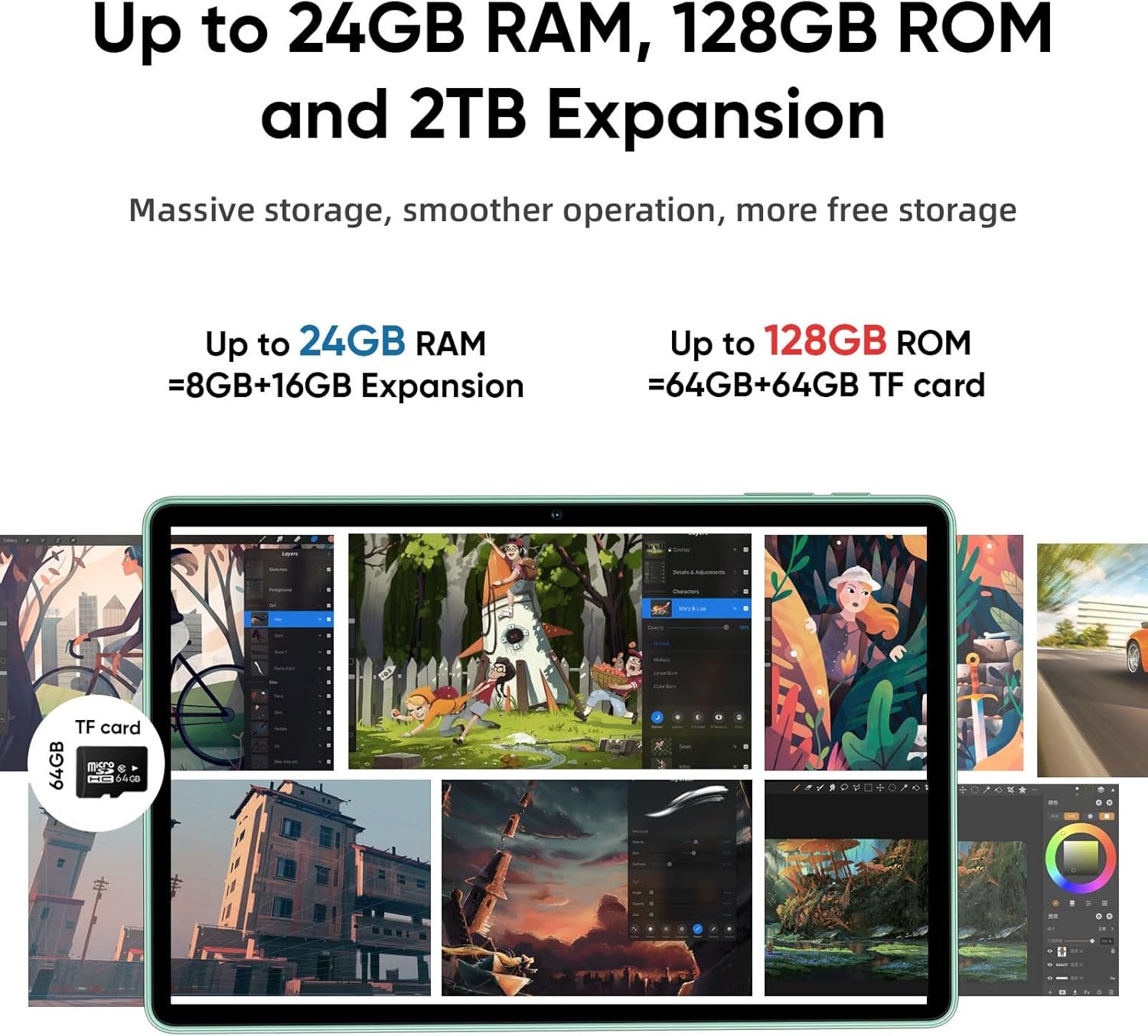 【Intelligent Storage Management】The Android 15 tablet is equipped with 24GB memory (8GB physical memory + 16GB virtual memory) and 128GB high-speed storage (64GB storage space + 64GB TF card) It also supports up to 2TB of storage expansion, allowing you to easily store a large number of movies, games and documents and enjoy your digital life.