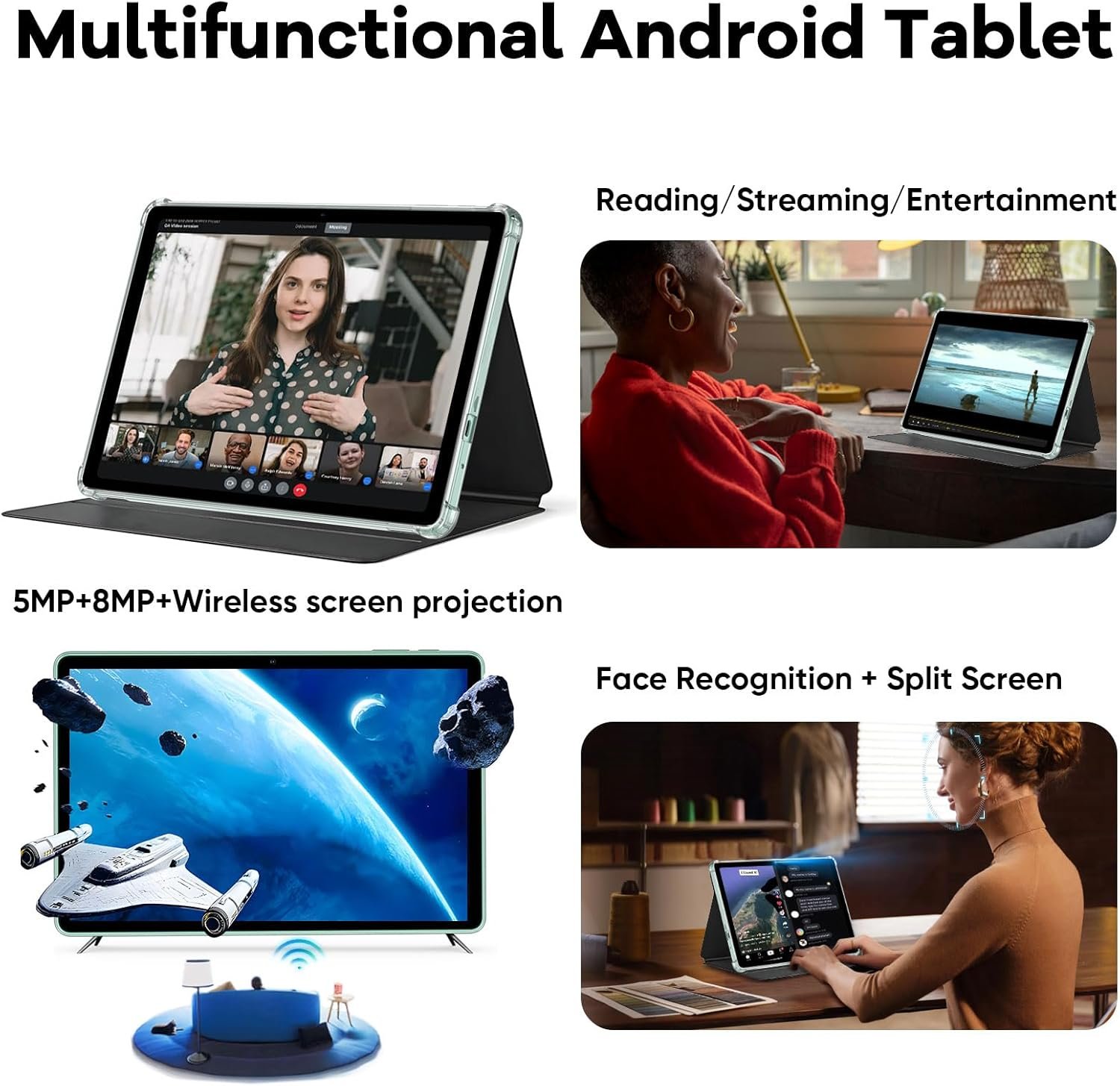 【Large Capacity Battery, Fast Charging】Built in 6000 large capacity battery and low-power CPU, allowing you to enjoy up to 8 hours of reading, video watching and web browsing. Equipped with Type-C interface and 18W PD fast charging, the tablet can be fully charged in only about 1.5 hours, saving your precious waiting time.