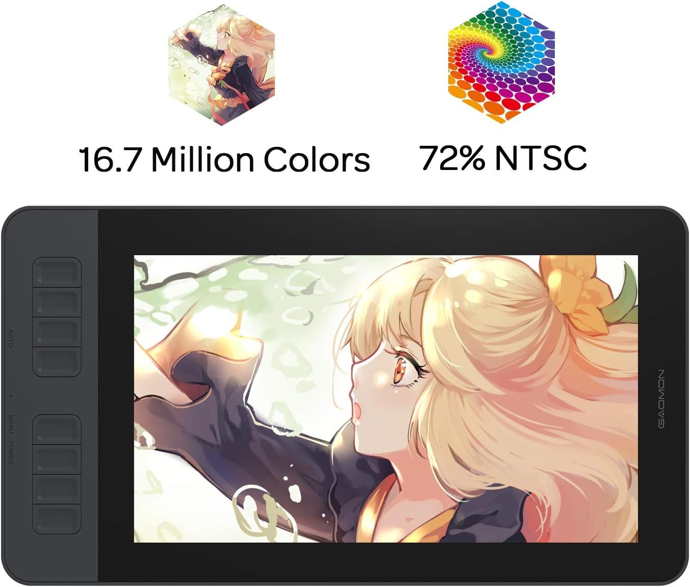 [Vivid Color Perfomance]: A combination of 72% NTSC (100% SRGB) color gamut and 16.7 million display colors enables to present your drawings in a more lifelike way with smoother color gradation on this drawing tablet for pc.