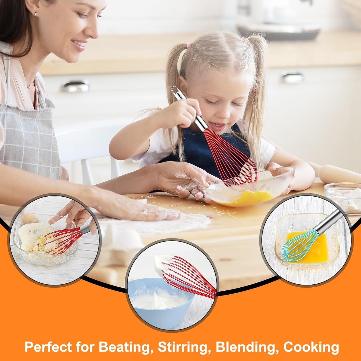 484ºF High Heat-Resistant: Feature BPA free silicone wires. 1.65mm thickened wires coated in 0.3mm soft silicone makes it stronger and more durable. Great for stirring sauces and gravies while heating.