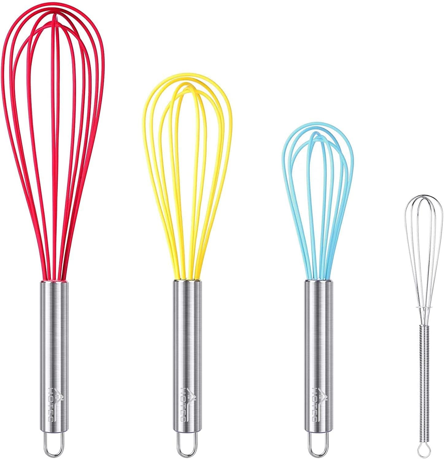 Hotec Silicone whisks are dishwasher-safe, rust-resistant, non-stick, and quick and easy to clean