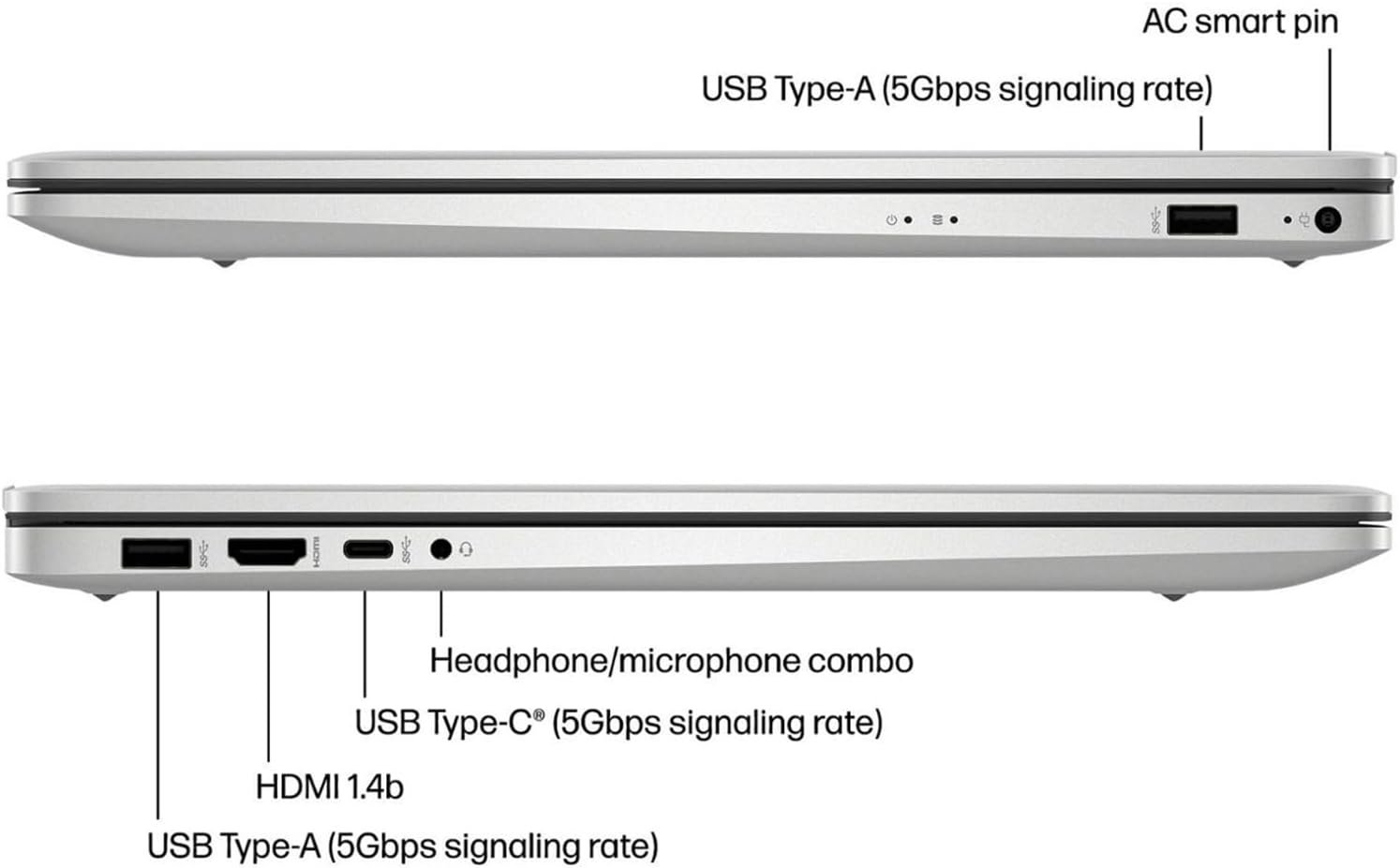 Accessory: WOWPC Recovery USB Processor: AMD Ryzen 5 7430U (Up to 4.3 GHz, 6 Core, 12 Thread) Graphics: Integrated AMD Radeon Graphics Operating system: Windows 11 Pro 64-bit Memory: Up to 64GB DDR4 RAM Hard Drive: Up to 2TB PCIe NVMe M.2 SSD Display: 17.3″ Diagonal, FHD (1920×1080), IPS, Anti-glare, 300 nits, 45% NTSC Connectivity: Wi-Fi 6 and Bluetooth 5.4 Ports: 1 x USB Type-C 5Gbps 2 x USB Type-A 5Gbps Signaling Rate 1 x HDMI 1.4b 1 x Headphone / Microphone Combo Jack 1 x Power connector Audio: Dual speakers Keyboard: Full-size Soft Gray Keyboard With Numeric Keypad, US English Built-in HD Webcam: HP True Vision 720p HD Camera With Temporal Noise Reduction and Integrated Dual Array Digital Microphones Color: Silver Dimensions L x W x H (inches): 15.78 x 10.15 x 0.78 Weight: Starting at 4.6 lbs