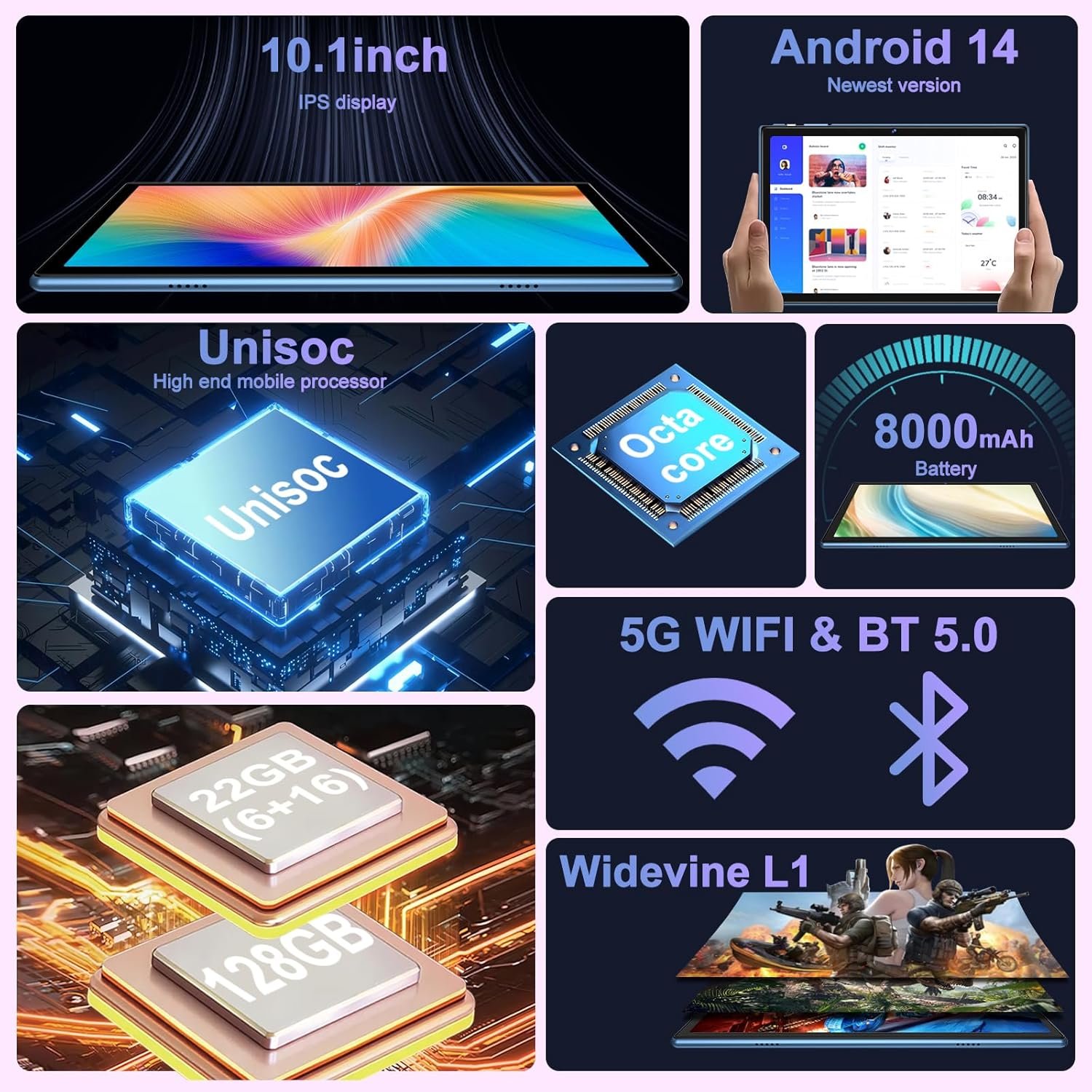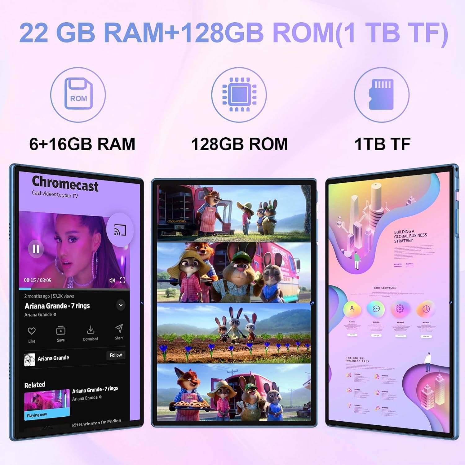 Ample Storage & GMS Certification: With 22GB RAM 128GB ROM, support for up to 1TB of expandable storage, this tablet offers plenty of space for apps and media. GMS certification ensures smooth access to Google services