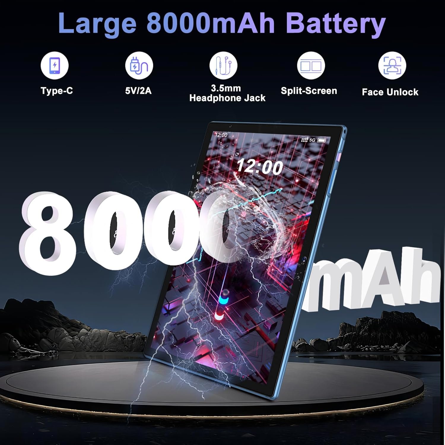 Long-lasting Battery: This tablet features an 8000mAh battery, offering extended usage for all your activities. With built-in GPS and Bluetooth 5.0, enjoy seamless connectivity for navigation and device pairing