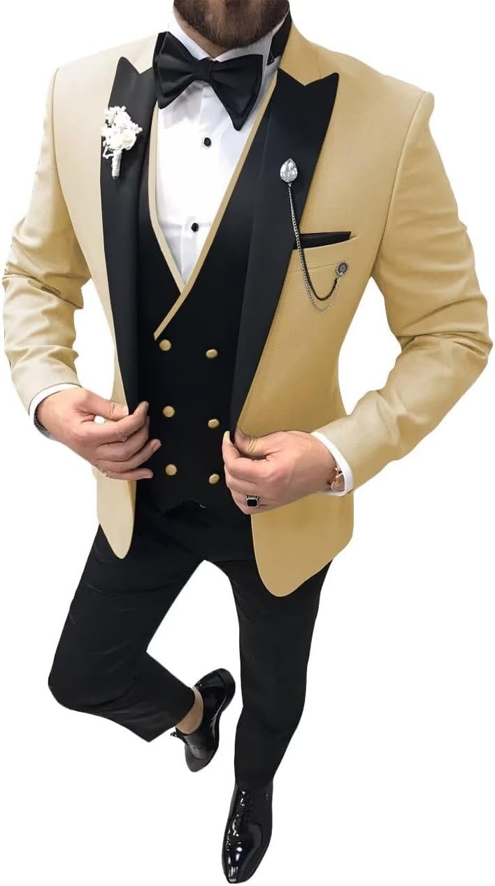 Tuxedo 3 piece for Men,Mens 3 Piece Tuxedo Suit Set Tuxedo Suits for Men Slim Fit